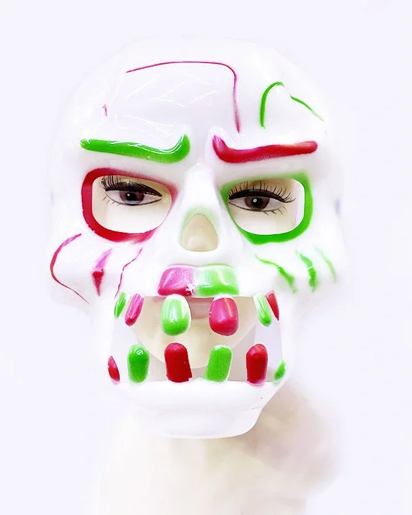 Beyaz Üzeri Rengarenk Korku Dişli Kafatası Maskesi