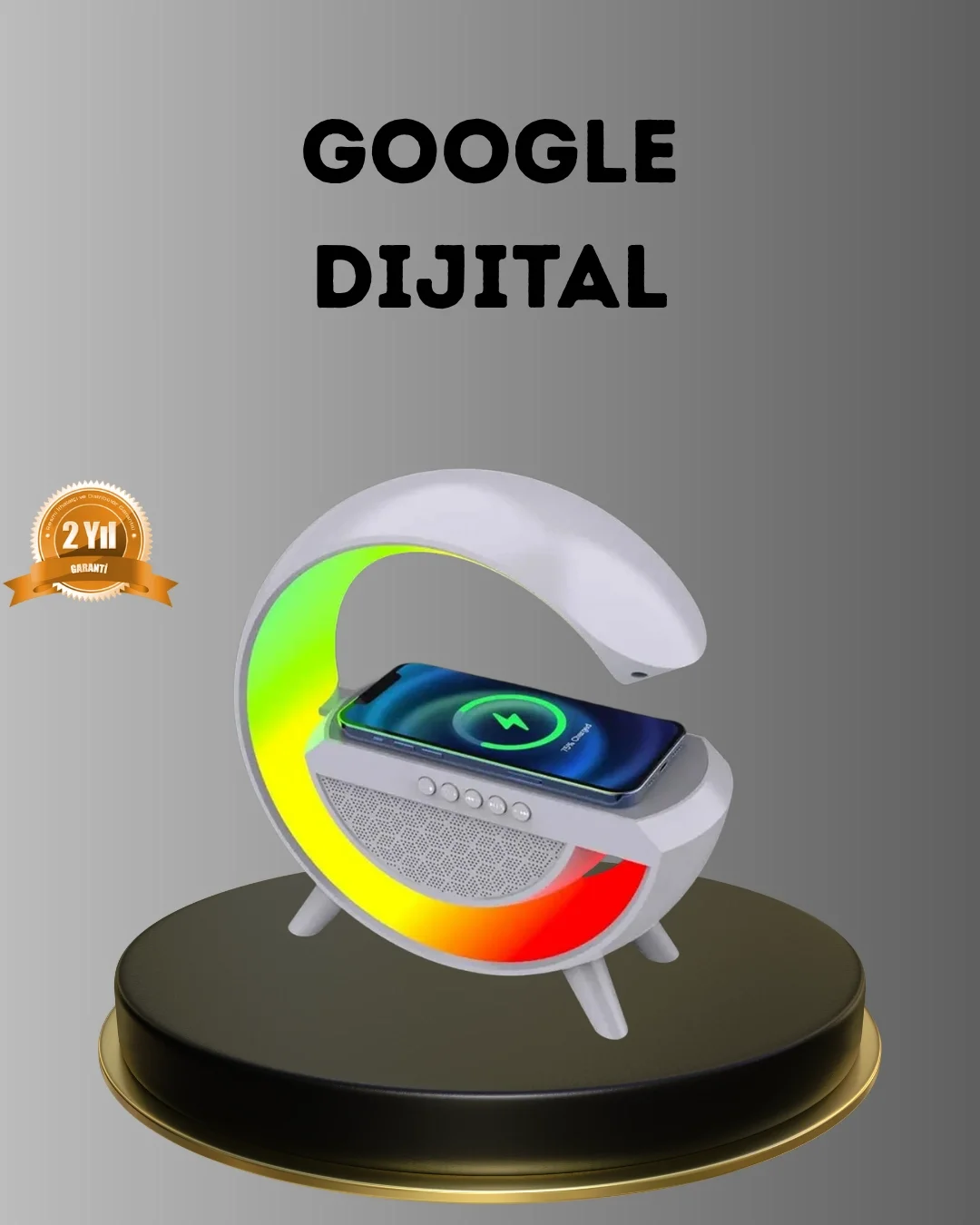 Bluetooth Hoparlörlü RGB Atmosfer Lambası Kablosuz Şarj ve Saat Özellikli