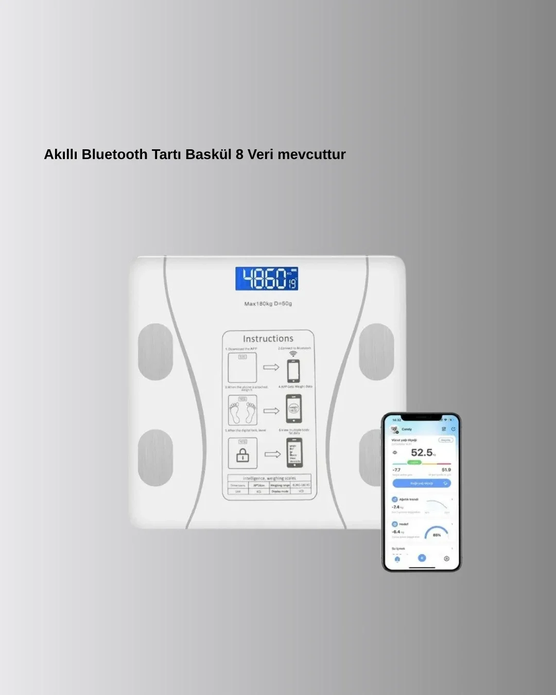 Akıllı Dijital Baskül – Bluetooth Bağlantılı, 8 Ölçüm Verili, Akıllı Vücut Analiz Tartısı