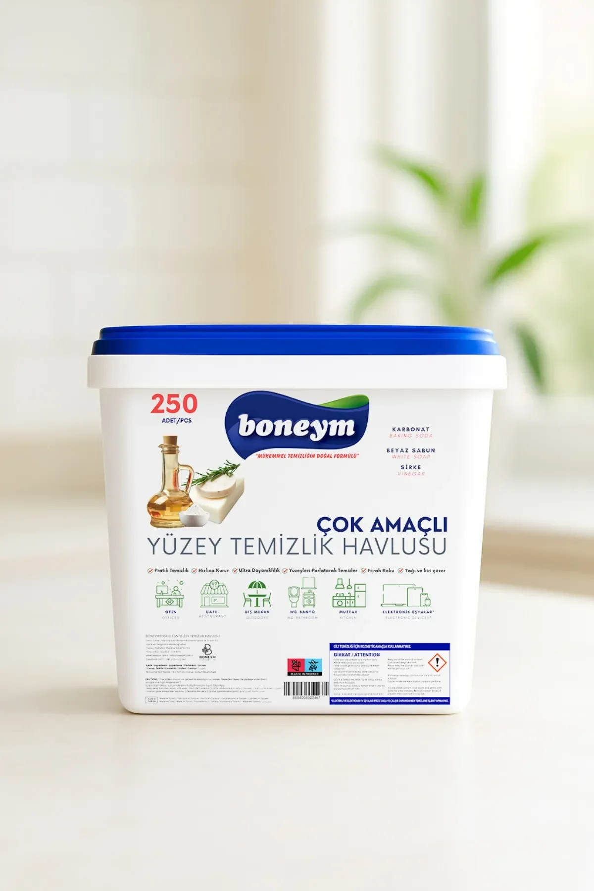 Boneym 250’li Beyaz Sabun Kokulu Hijyenik Kova Islak Temizlik Havlusu