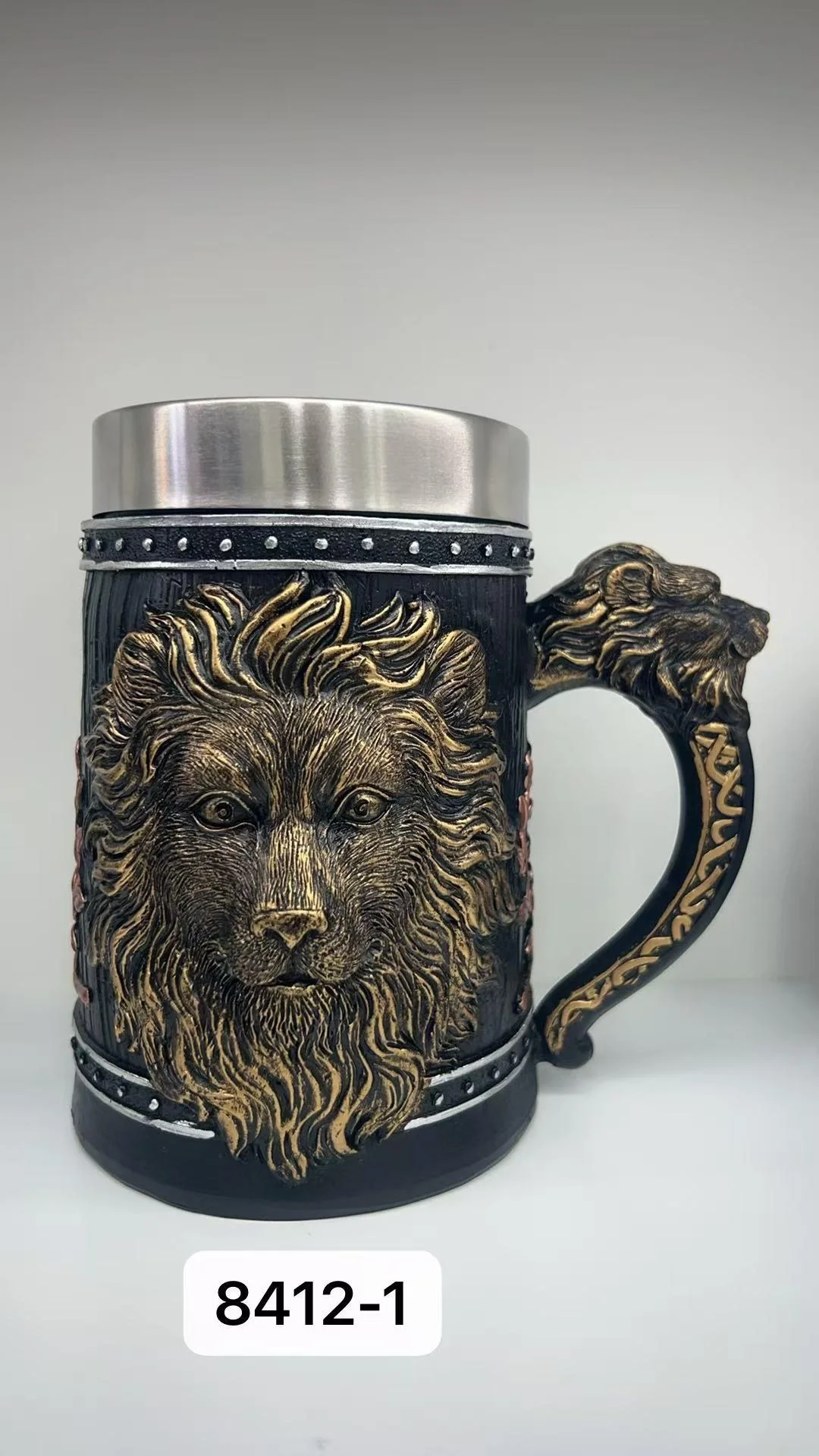 Büyük Boy Aslan Motifli Çelik Kupa Bardak Kod 8412-1