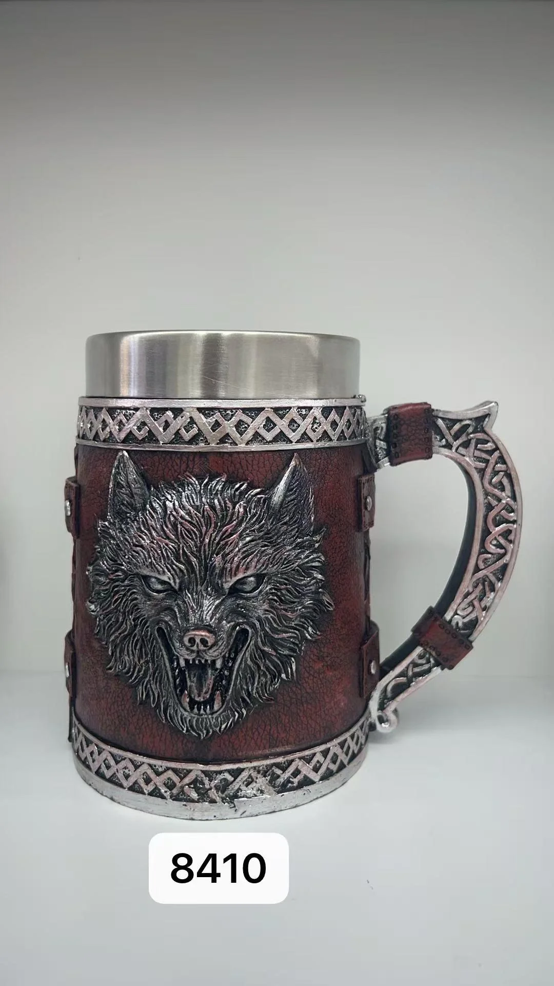 Büyük Boy Kurt Motifli Çelik Kupa Bardak Kod 8410