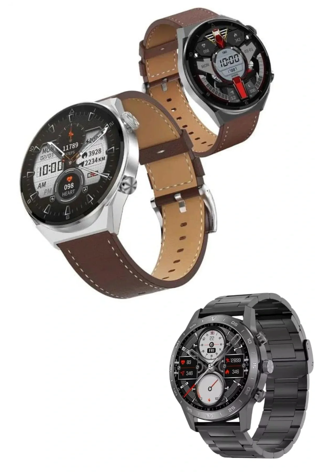 Akıllı Saat Amoled Ekran Metal Ve Deri Kordonlu Uyku ve Sağlık Takibi Titreşimli