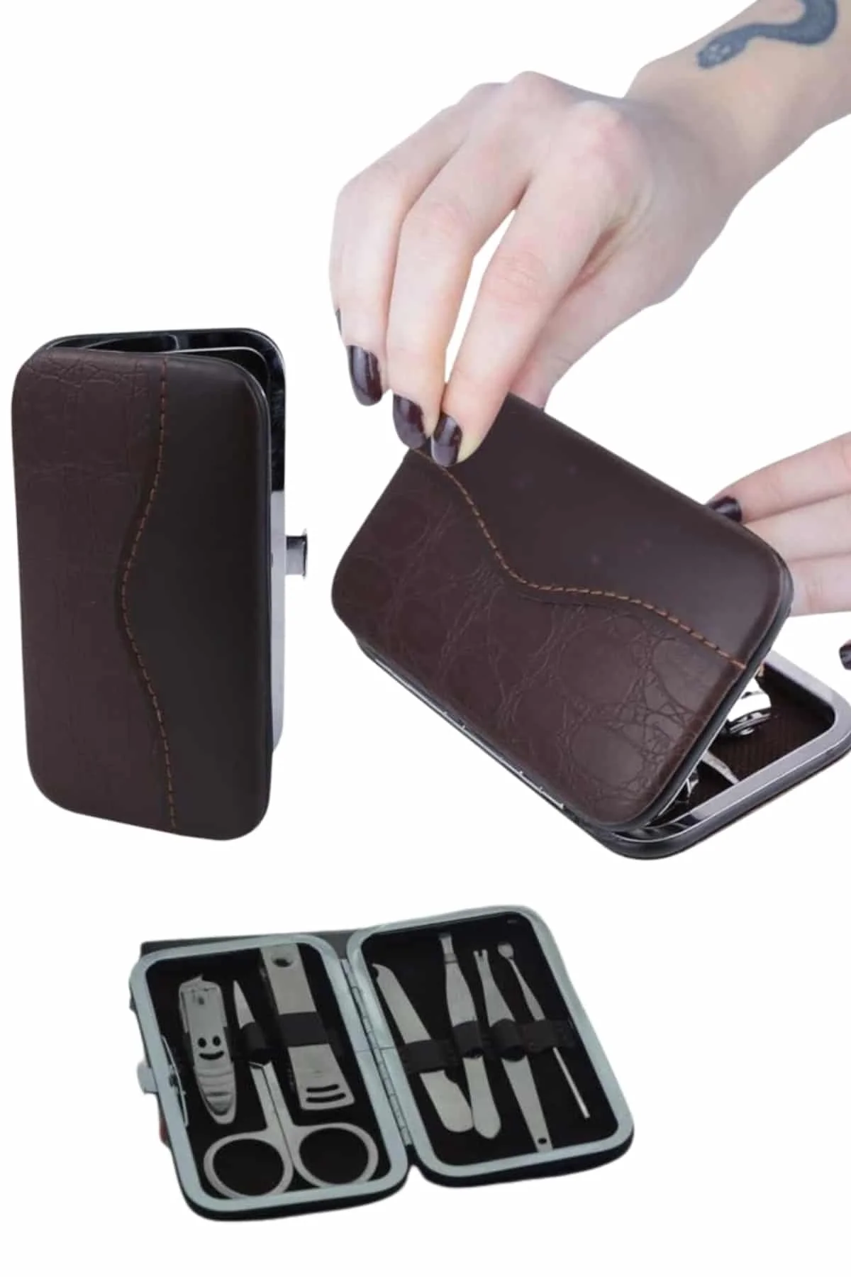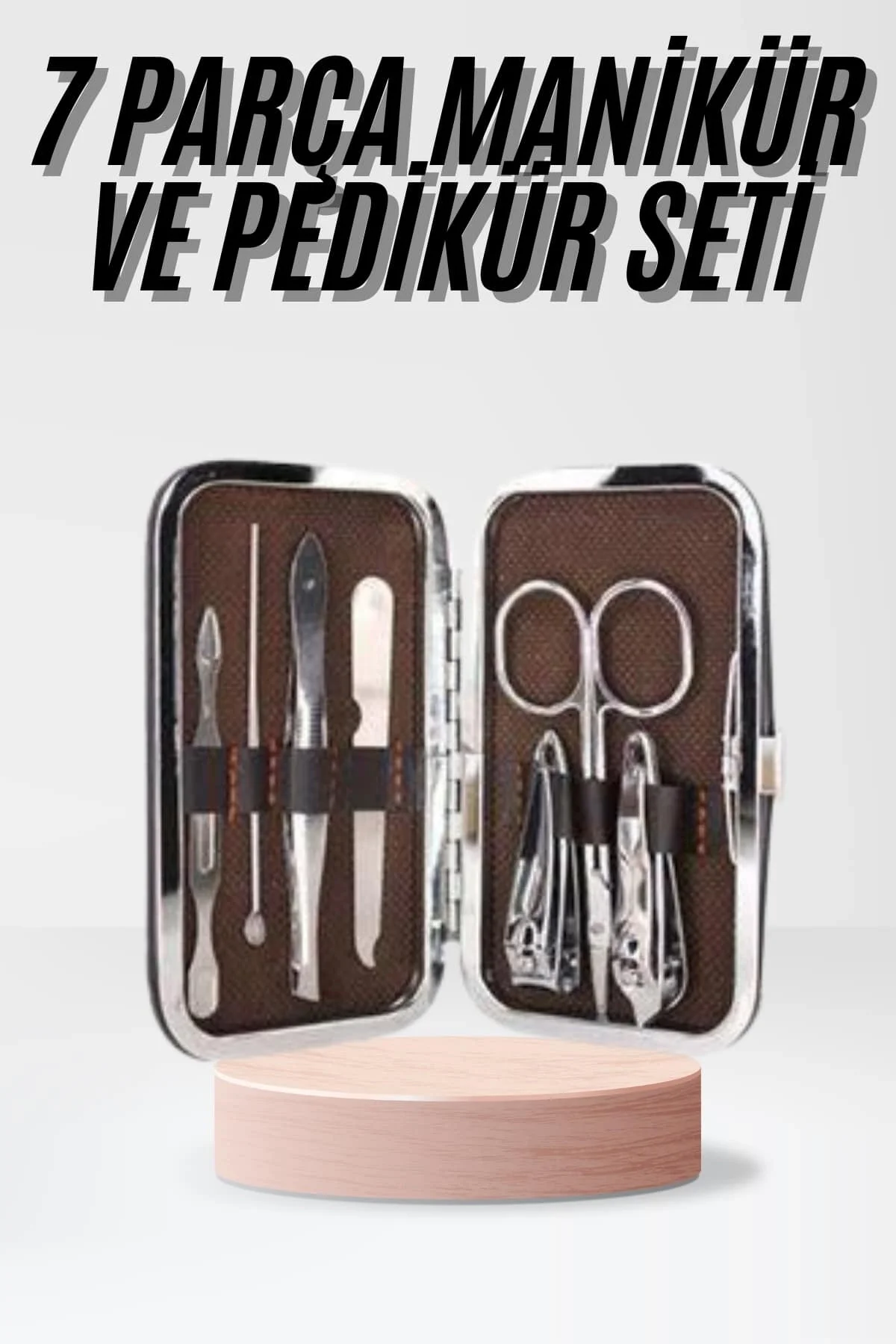7 Parça Paslanmaz Çelik Manikür ve Pedikür Seti Çantalı Profesyonel