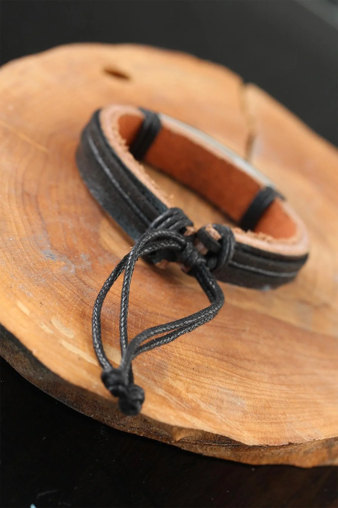 Çelik Aksesuarlı Siyah Renk Deri Erkek Bileklik