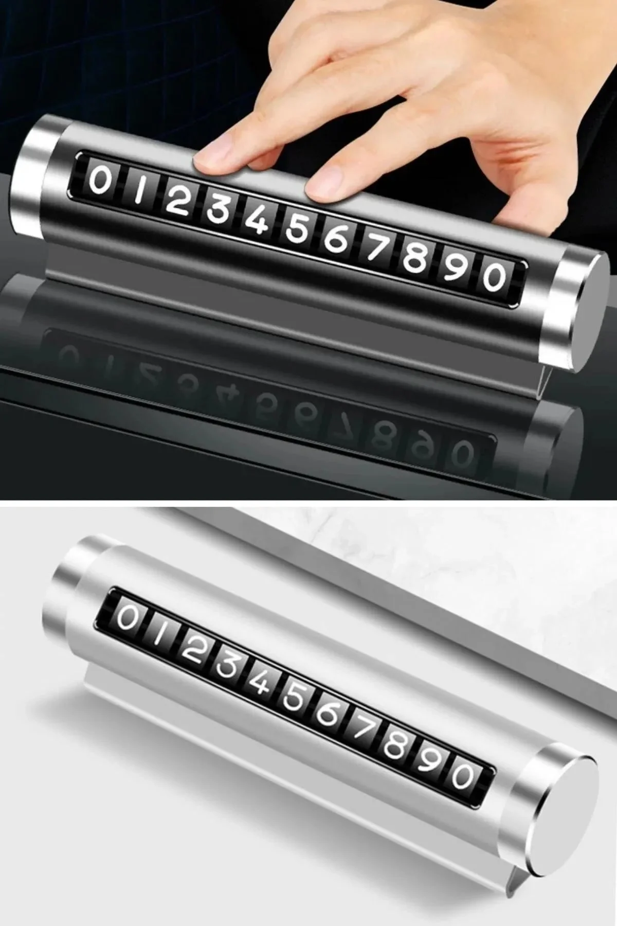 Alüminyum Kasa Gri Renk Çevirmeli Araç İçi Telefon Numaratörü Park Oto Numaratörü, modern ve şık tasarımı ile park halindeyken aracınızın iletişim bilgilerini kolayca sergilemenizi sağlar. Alüminyum kasası, gri renk seçeneği ve çevirmeli numaratörü ile estetik ve işlevselliği bir arada sunar.