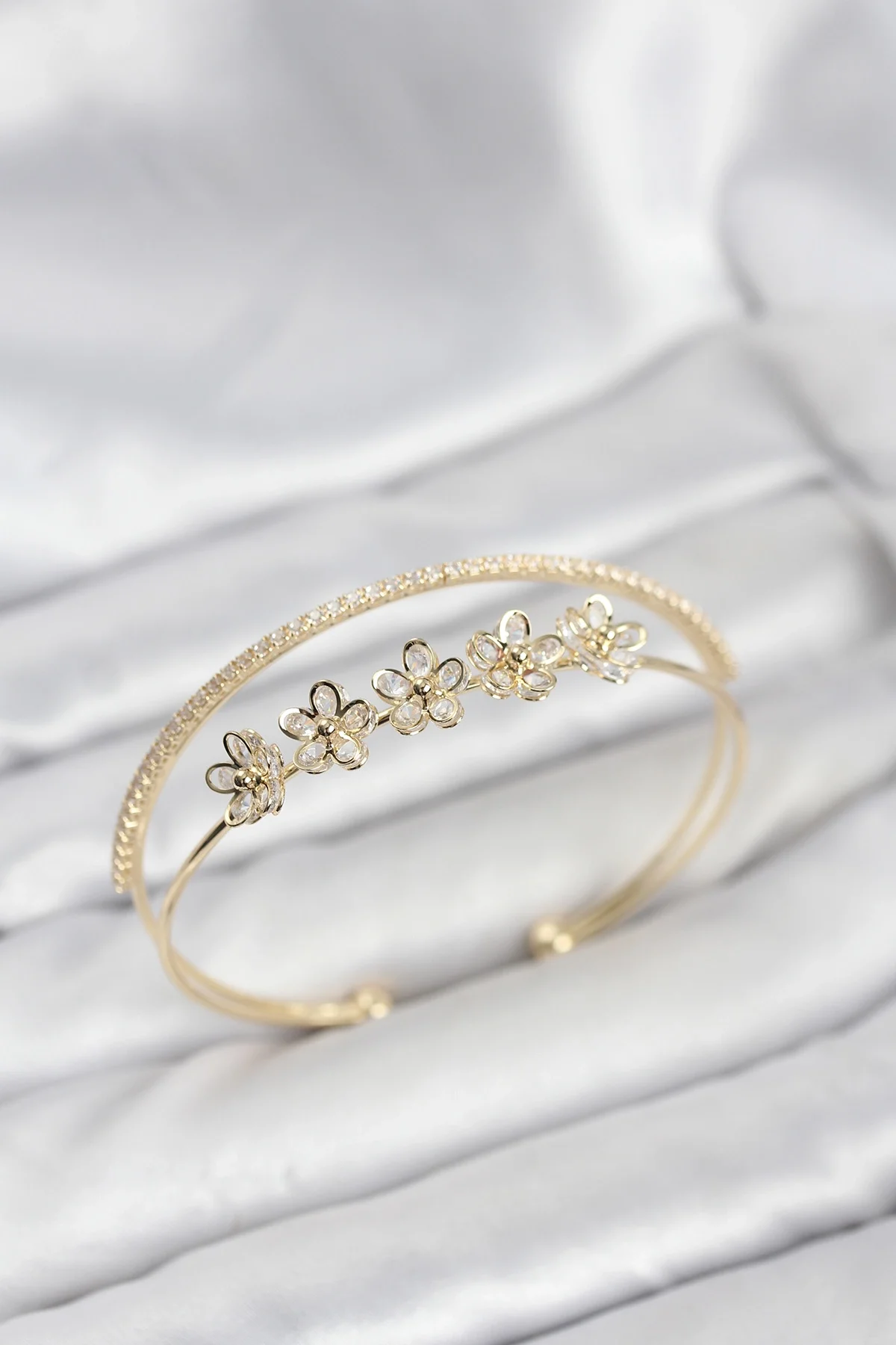 Çiçek Model Pirinç Gold Renk Kadın Bileklik