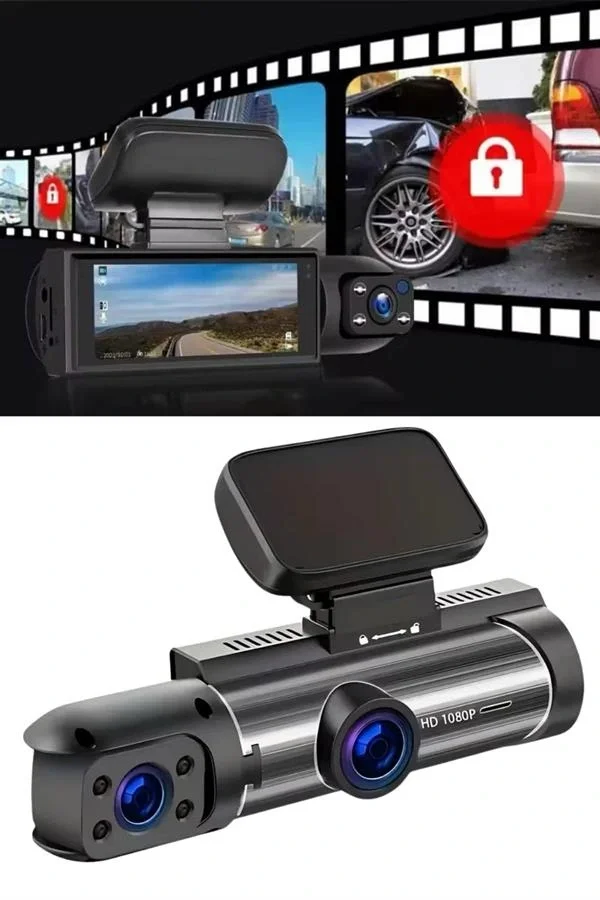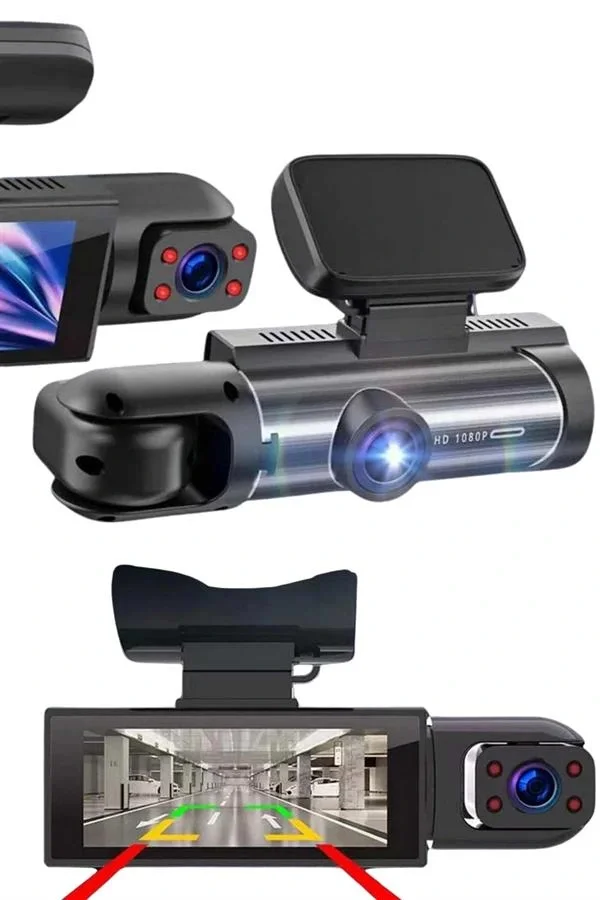 360° Kapsama Sahip Full HD Araç Kamerası 3’lü Kayıt Gece Görüşlü DashCam