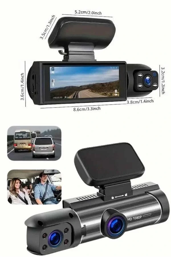 3 Kameralı Araç İçi Kayıt Cihazı 1080P Full HD Gece Görüşlü ve Wi-Fi Bağlantılı