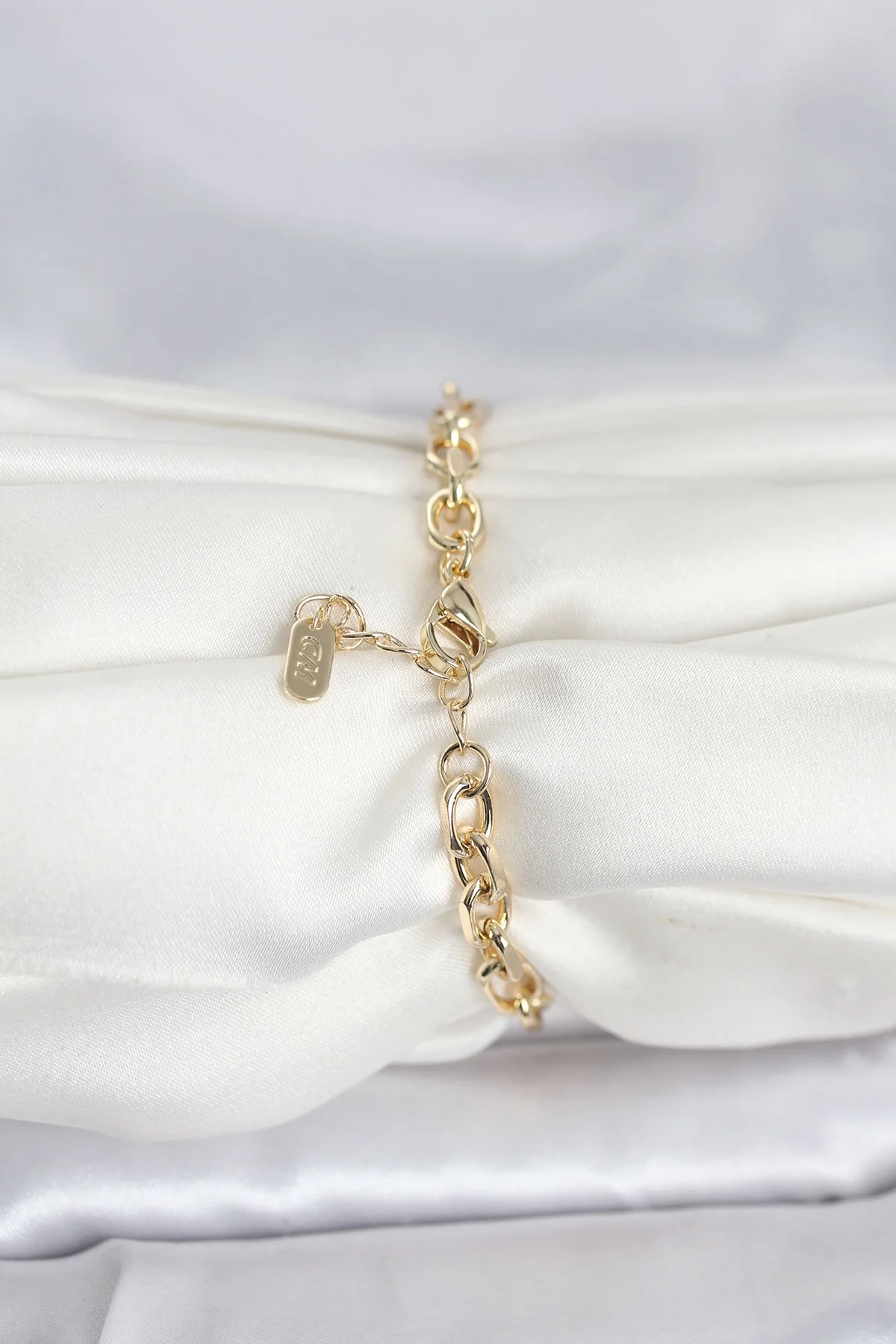CM 14K Gold Renk Kalın Zincir Model Kadın Bileklik