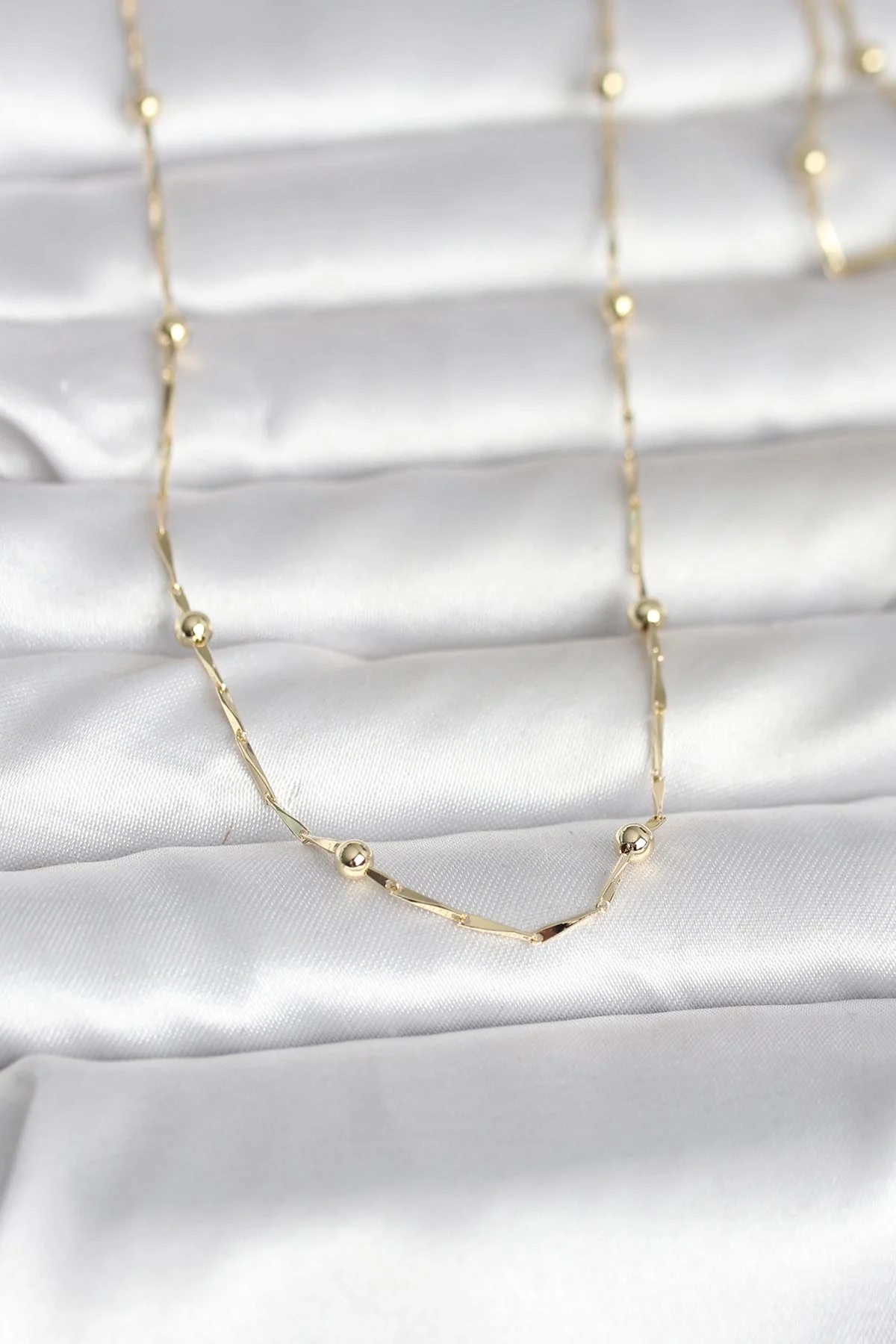 CM 14K Gold Renk Kesme Çubuk Zincir Topçuklu Model 60 cm Kadın Kolye
