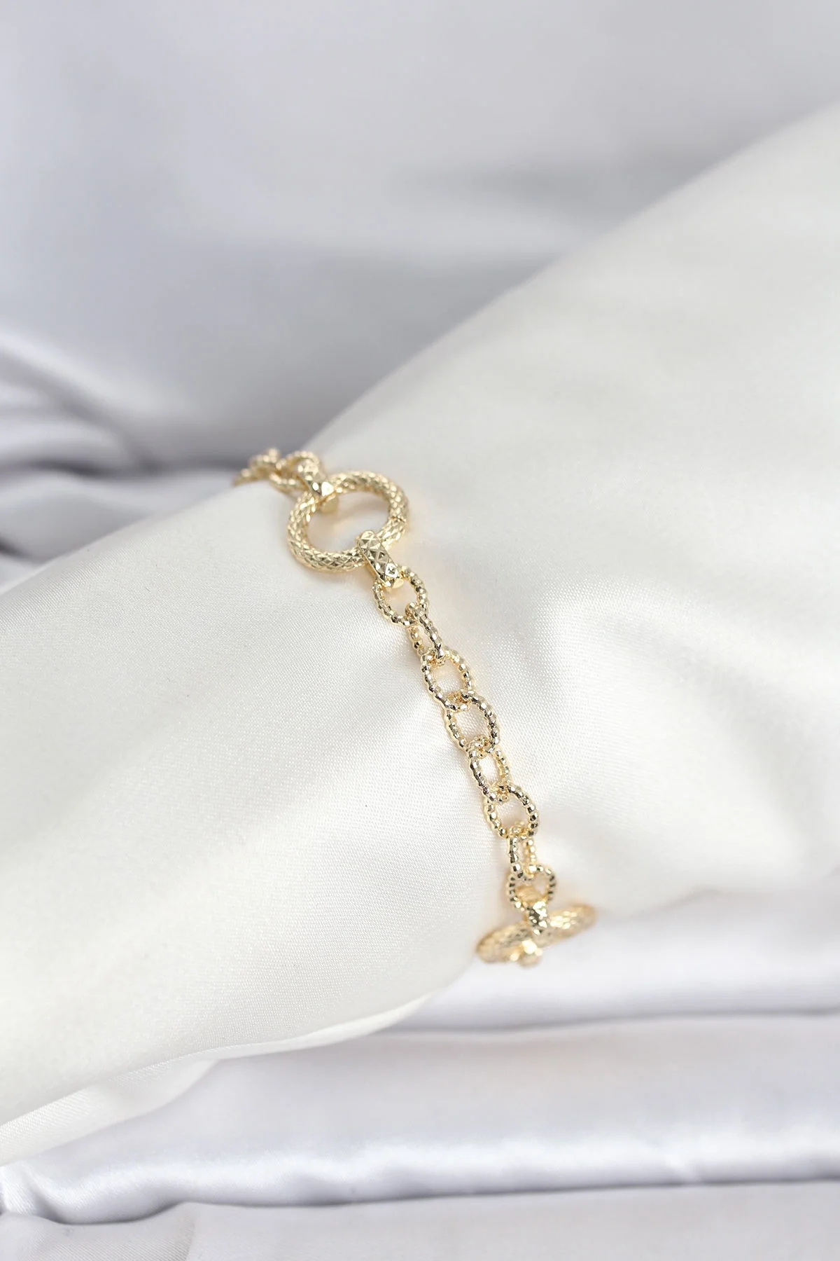 CM 14K Gold Renk Lazerli Halka Model Kadın Bileklik