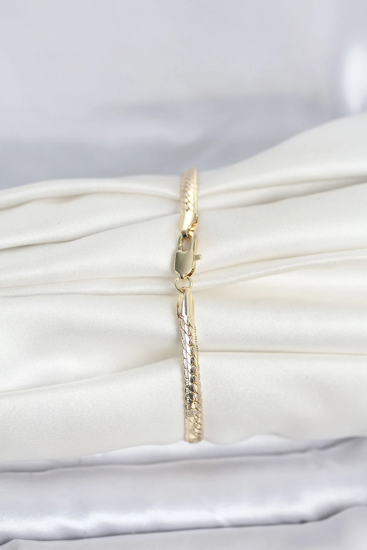 CM 14K Gold Renk Lazerli Yassı Zincir Model Kadın Bileklik