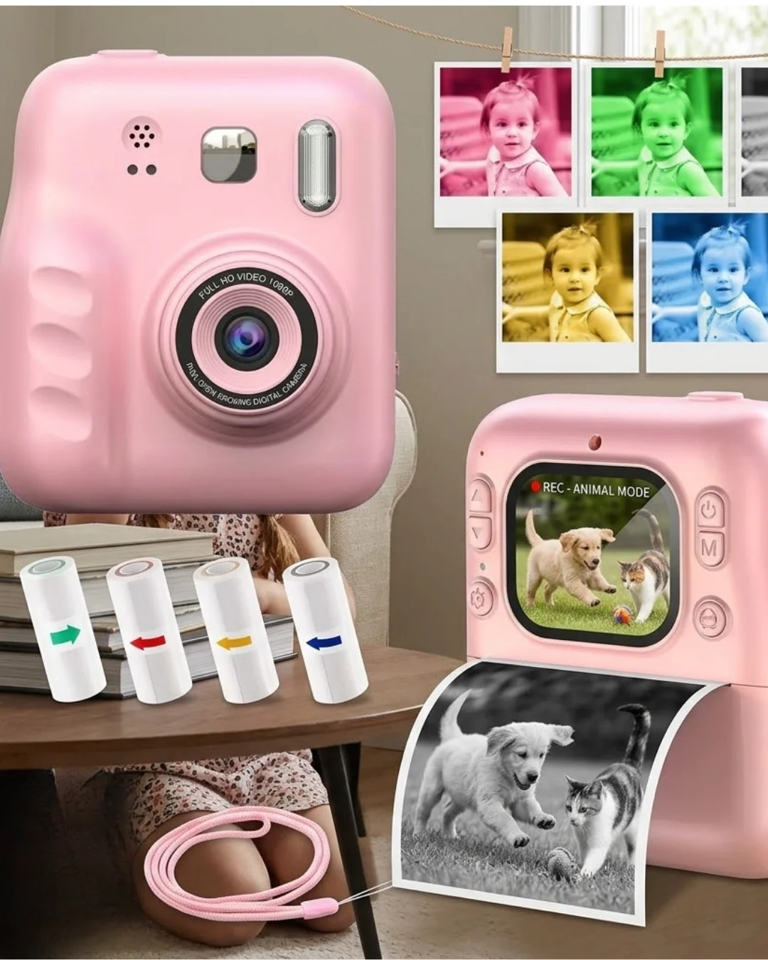 Çocuk Dijital Fotoğraf Makinesi Anında Baskı ve HD Video Kayıt Özellikli 5 kalem ve 4 rulo kağıt hediye