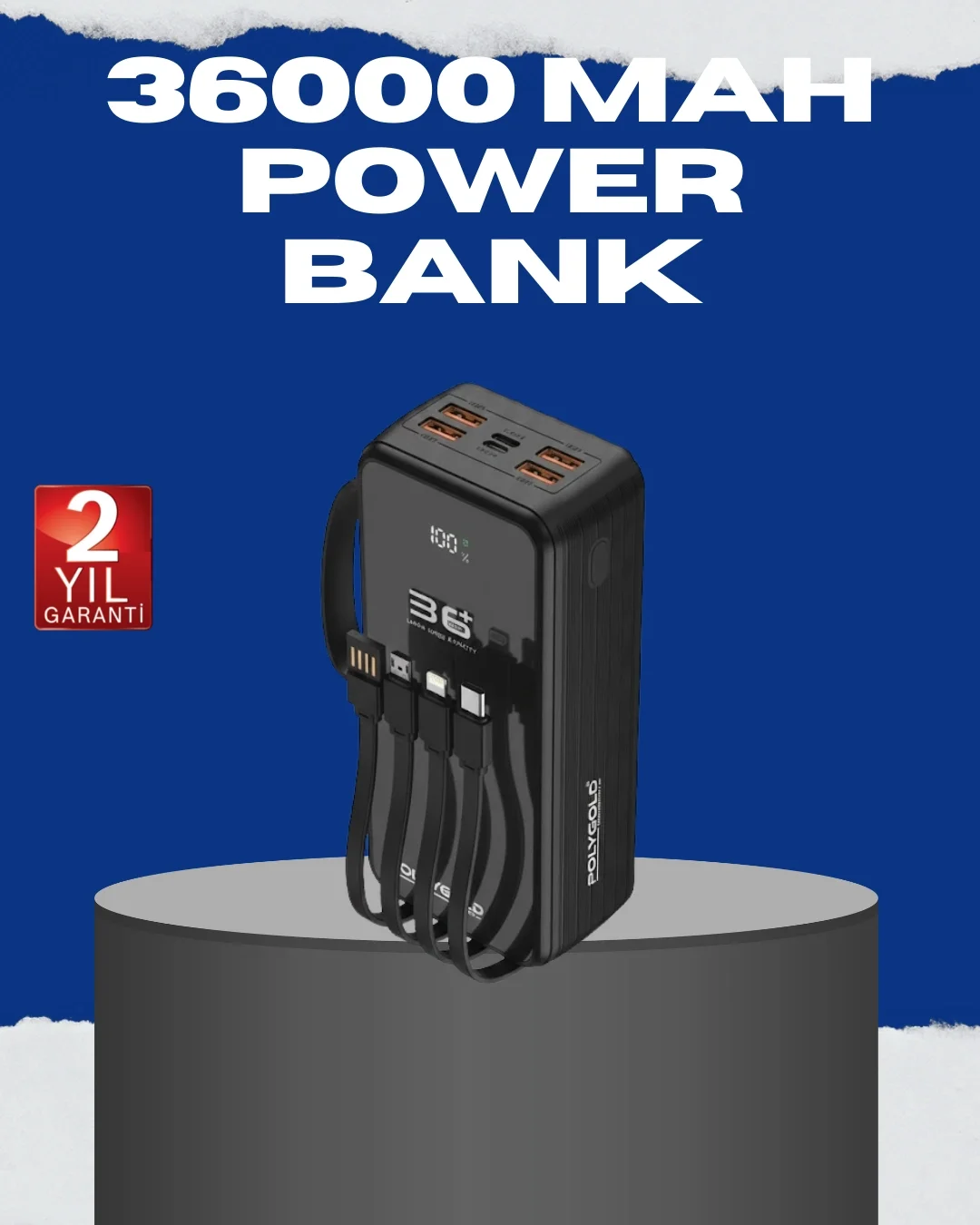 Çoklu Kablo Çıkışlı Taşınabilir Powerbank Kompakt Tasarım