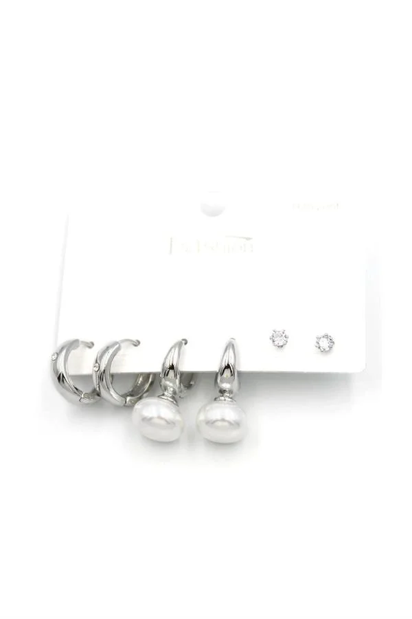 Çoklu İncili Küpe - Gümüş