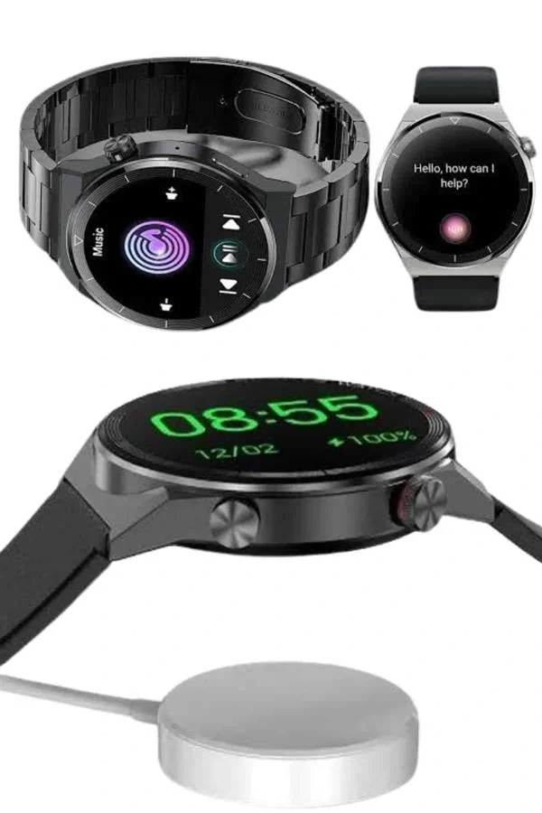 Akıllı Saat Amoled Ekran Metal Ve Deri Kordonlu Uyku ve Sağlık Takibi Titreşimli