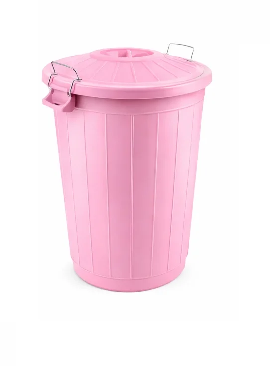 Çöp Kovası 70 Lt Plastik Çöp Kovası Kapaklı Büyük Boy Çöp Bidonu Dayanıklı Çöp Kovası - Pembe
