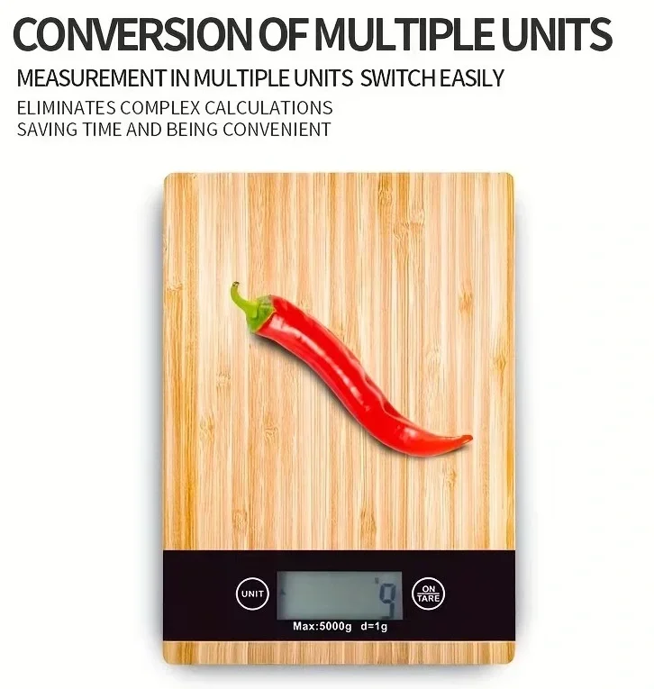Crown Dijital Hassas Mutfak Tartısı - Terazisi-Hassas Ölçüm 5kg Bambu Görünümlü (5047)