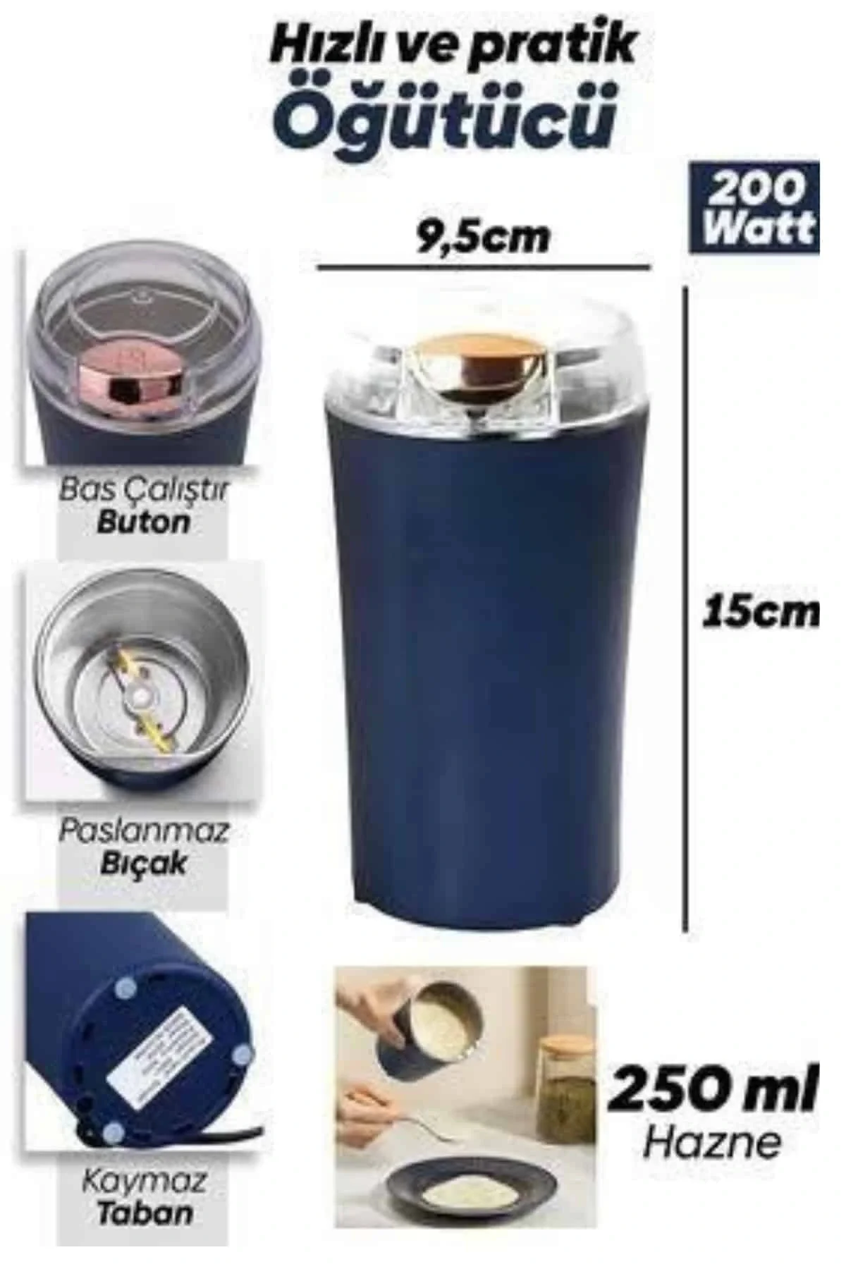 Elektrikli Kahve ve Baharat Öğütücü – Güçlü Motor, Paslanmaz Çelik Gövde, Kolay Temizlik