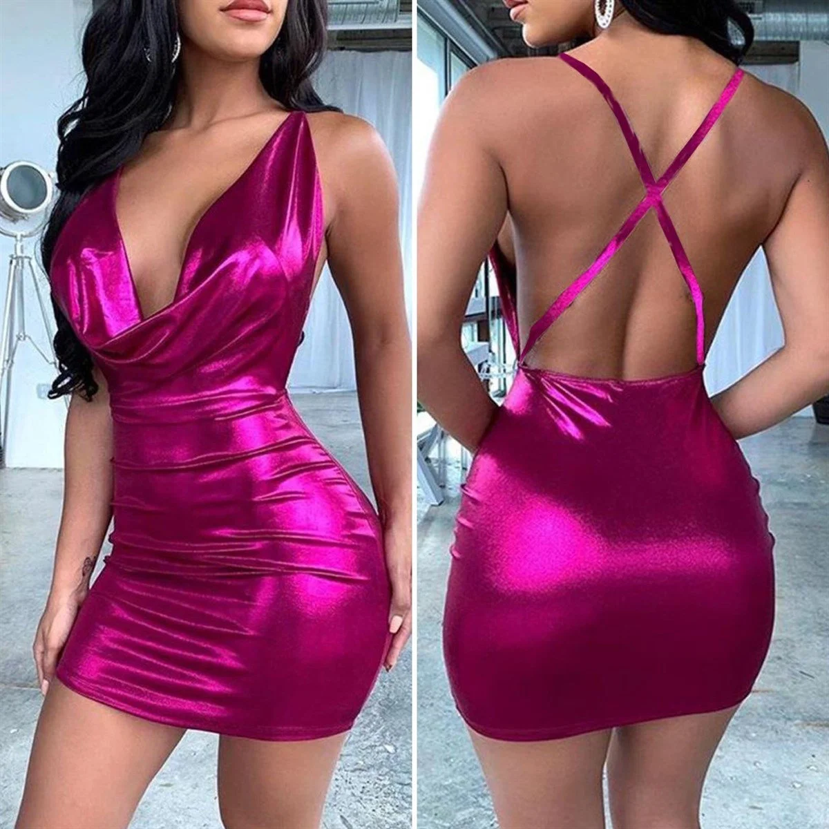 Sırt dekolteli parlak mini elbise. Esnek vücudu saran dar mini elbise. Esnek likralı Lame kumaştan üretilmiştir. Renk ve beden seçenekleri mevcuttur. Büyük beden fantazi giyim arayanlar için ideal bir modeldir. Avantajlı fiyat ile sizlere özel istediğiniz beden ve renk ile göndrilmektedir. Esnek kumaş olması nedeniyle vucudunuzu sarar ve seksi bir görünüm sağlarsınız. Gece giyim ve fantazi giyim sevenler için özel bir model. Partnerinizin beğenecğine emin olabilirsiniz. Özel gecelerde , özel mekanlarda kullanıma uygundur. Topuklu ayakkabı ile görüntünüzü manken gibi sağlayabilirsiniz. Fantazi elbise modeleri ile ön planda olan Terry Pau markası ile gönderilmektedir.