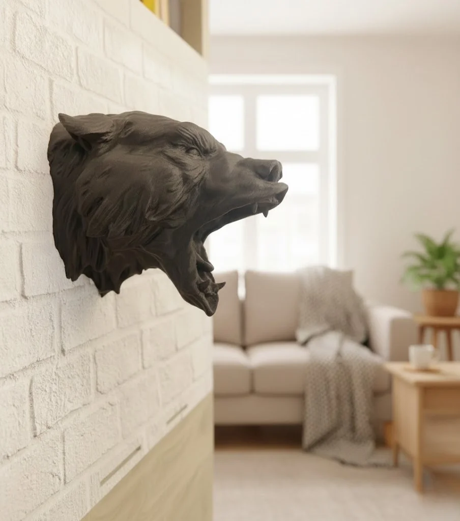 Dekoratif Asılabilir Siyah Ayı Başı 3D Duvar Heykeli 25x19 cm