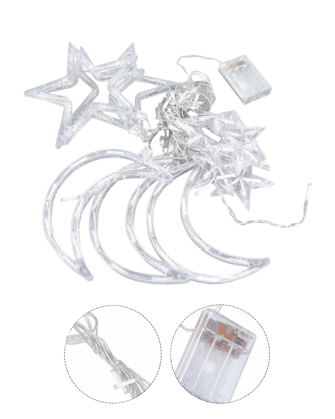 Pilli Ay Yıldız LED Perde Işık Ev ve Organizasyon Dekoru
