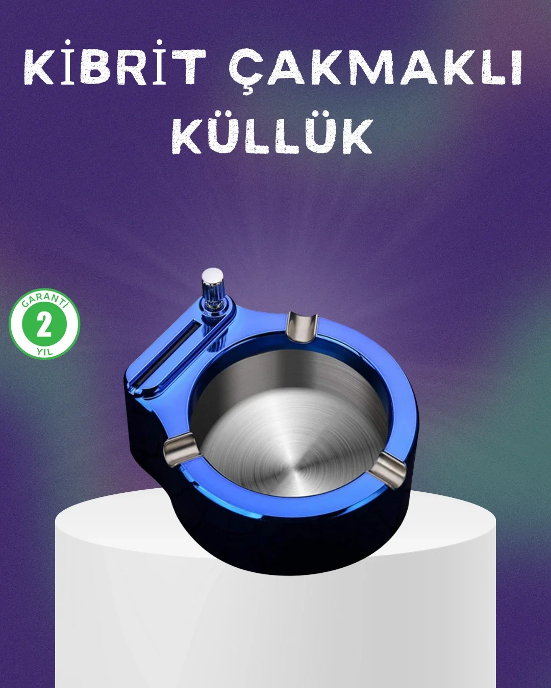 Yuvarlak Metal Küllük Çakmak Entegreli Dayanıklı Yapı