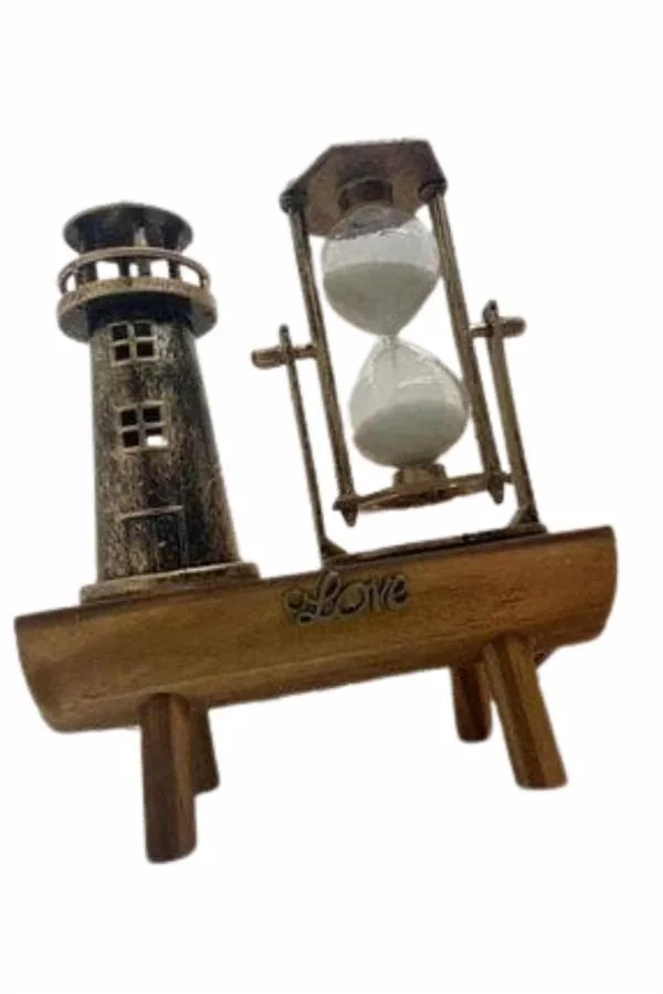 Ahşap Kum Saati ve Deniz Feneri Figürü Bir Arada – Ev & Ofis Dekorasyonu