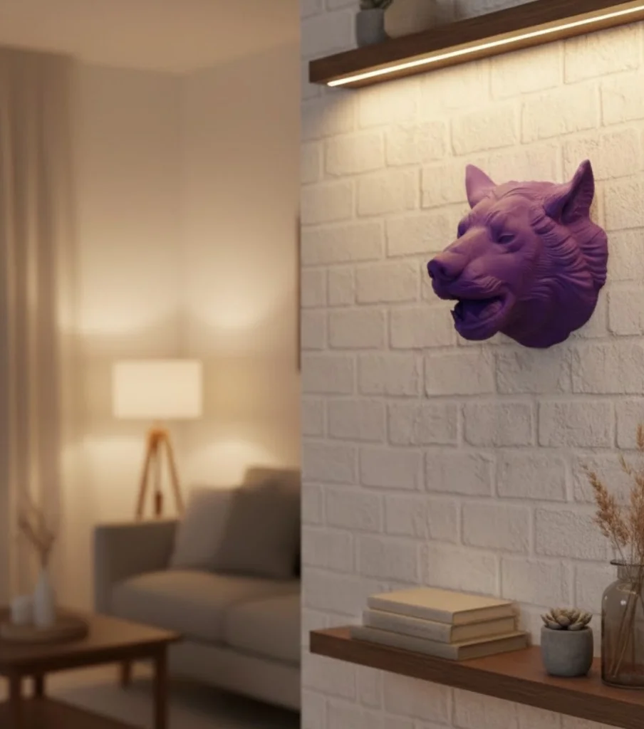 Dekoratif Mor Kurt Duvar Heykeli Asılabilir Hediyelik 25x19 cm