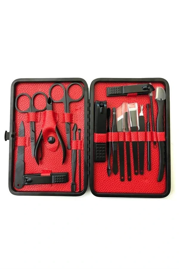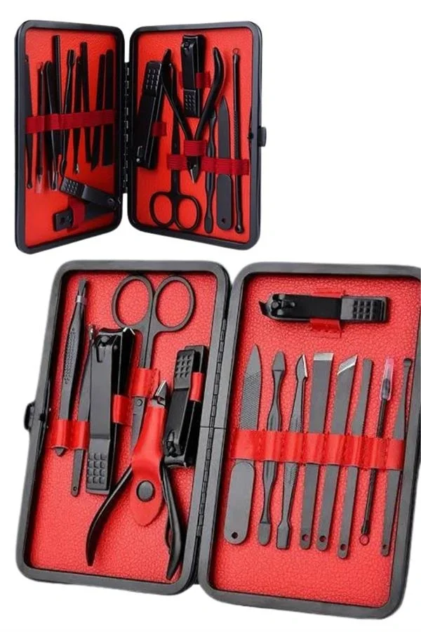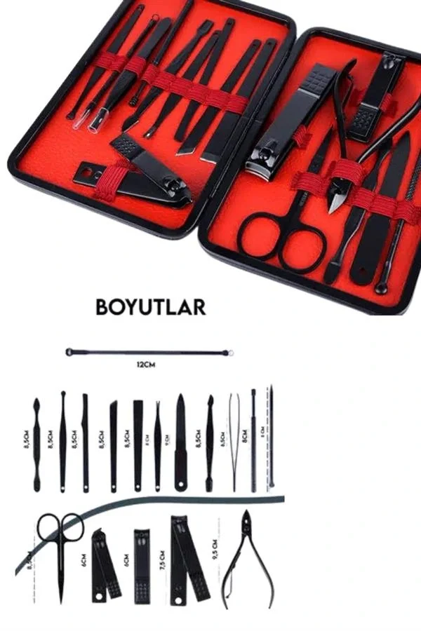Deri Çantalı Siyah Paslanmaz Çelik 17 Parça Manikür Pedikür Seti