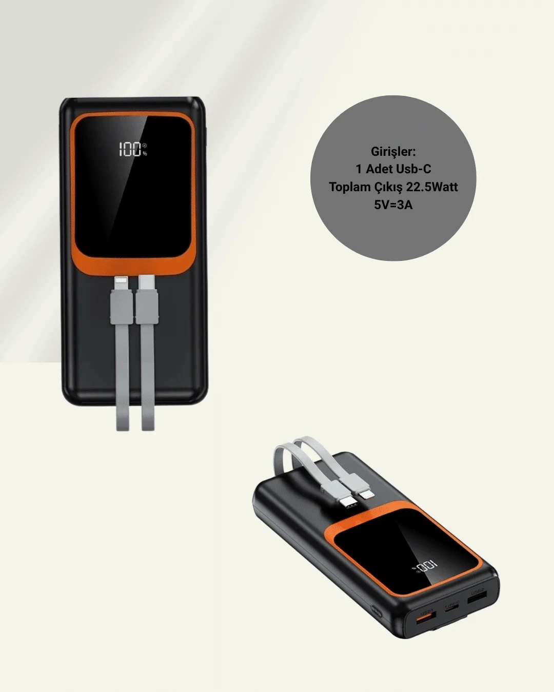 Çoklu Kablo Çıkışlı Taşınabilir Powerbank Kompakt Tasarım