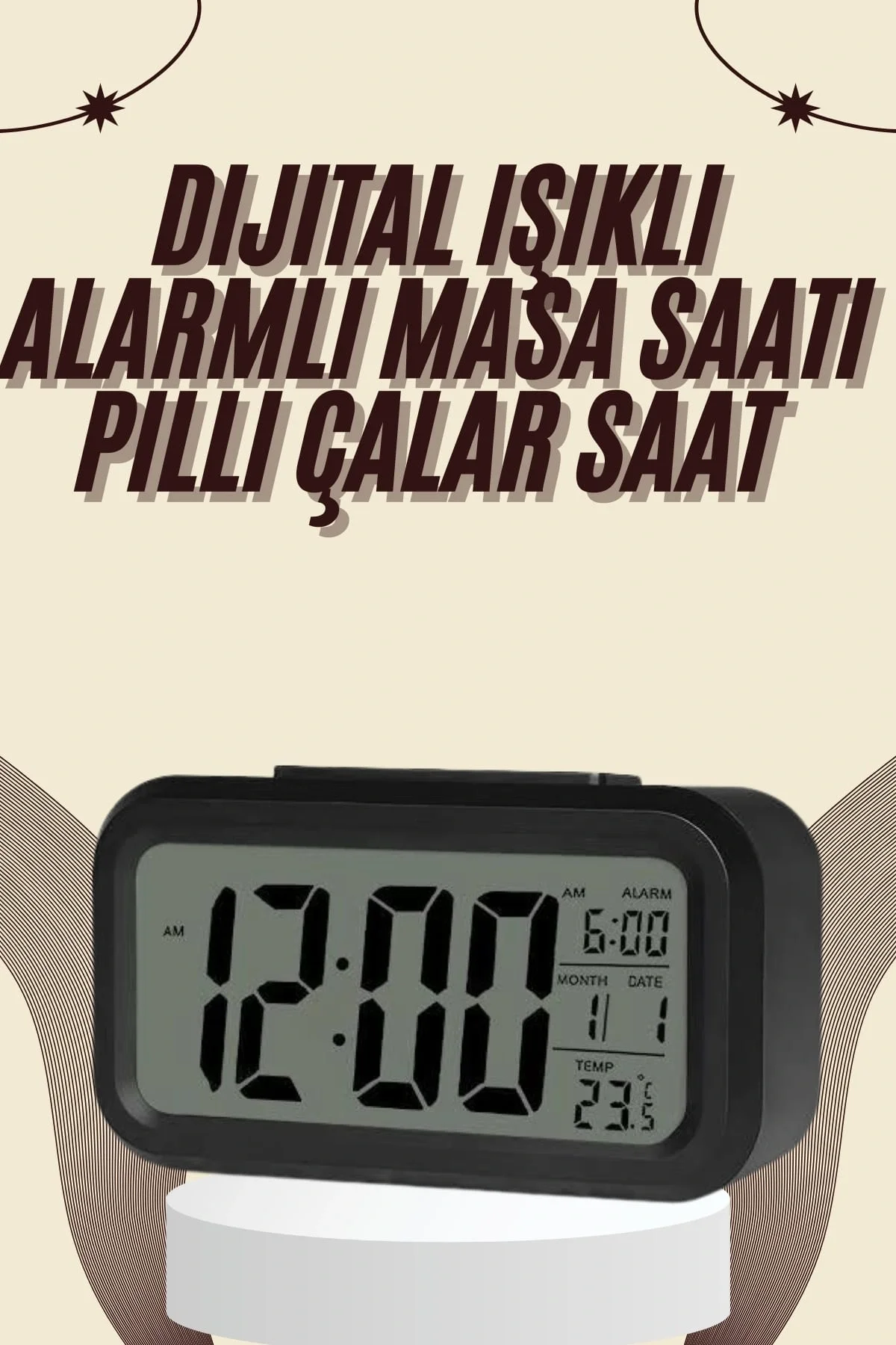 Dijital Masa Saati Termometreli Takvim Çalar Saat Led Ekran Pilli