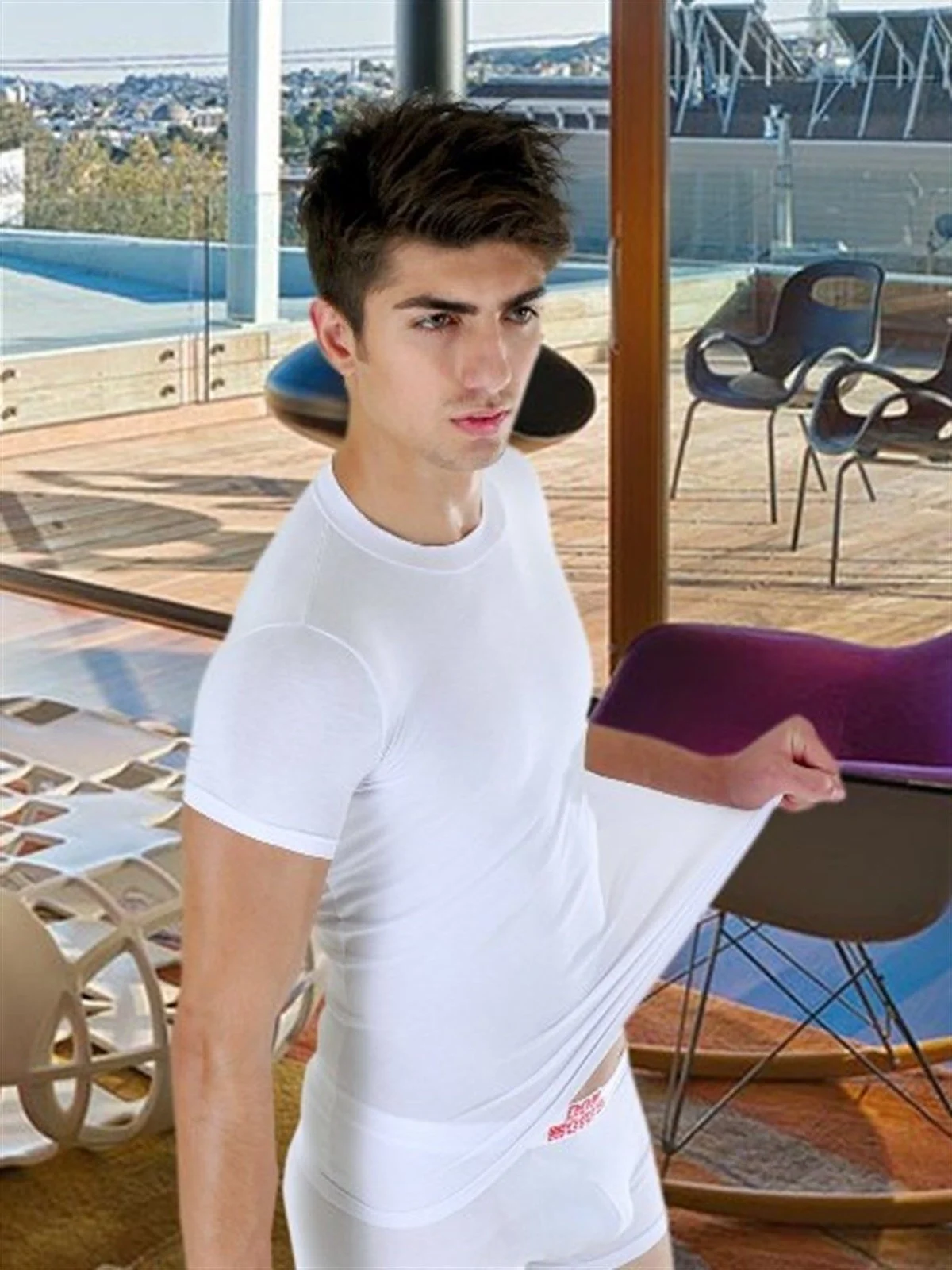 Esnek pamuklu kısa kollu fanila. Don Moris Classic kolleksiyonundan özel ve fit kesim atlet. Yumuşak ve esnek pamuk kumaş sevenler için ideal.