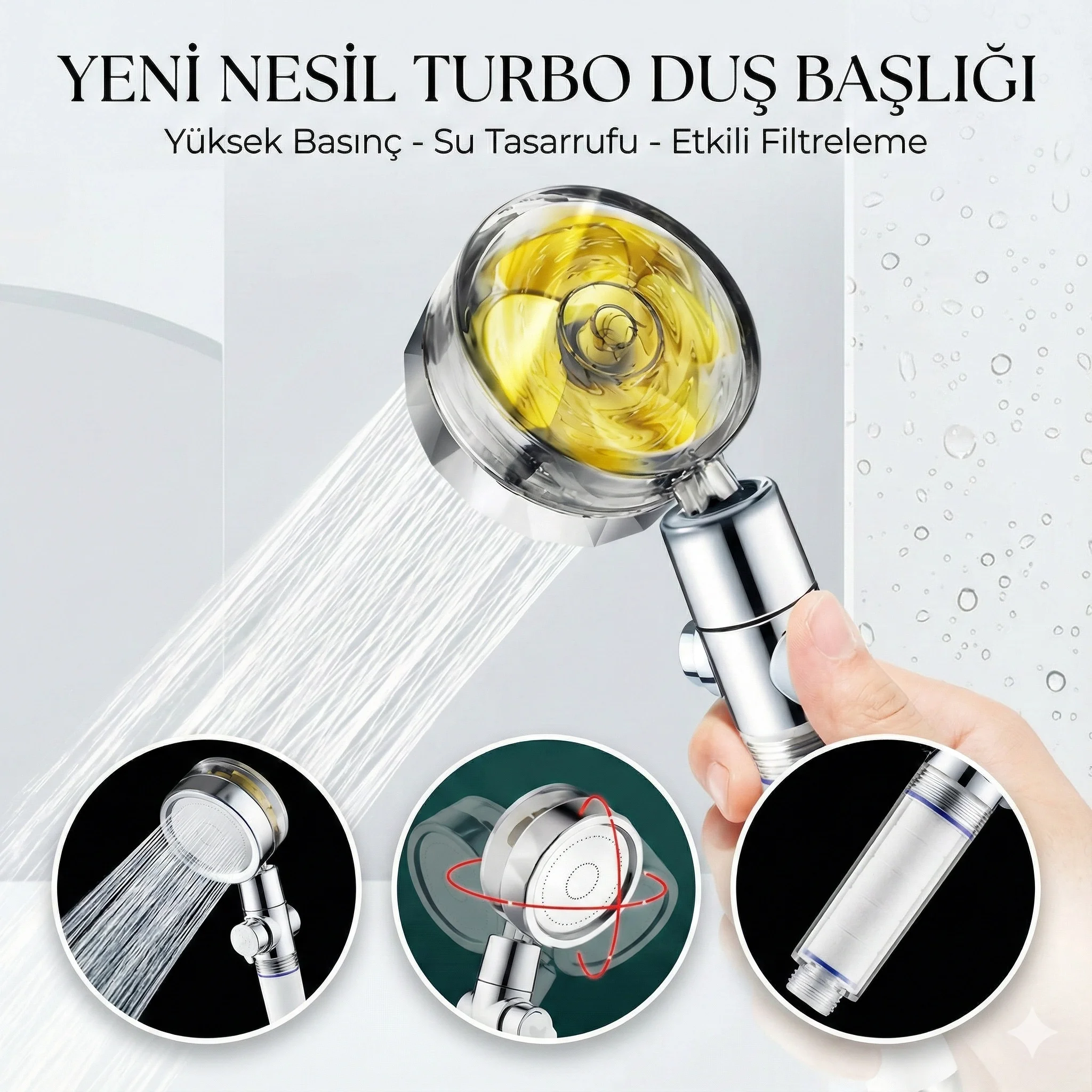 Duş Başlığı Turbo Pervaneli Serinletici Tasarım