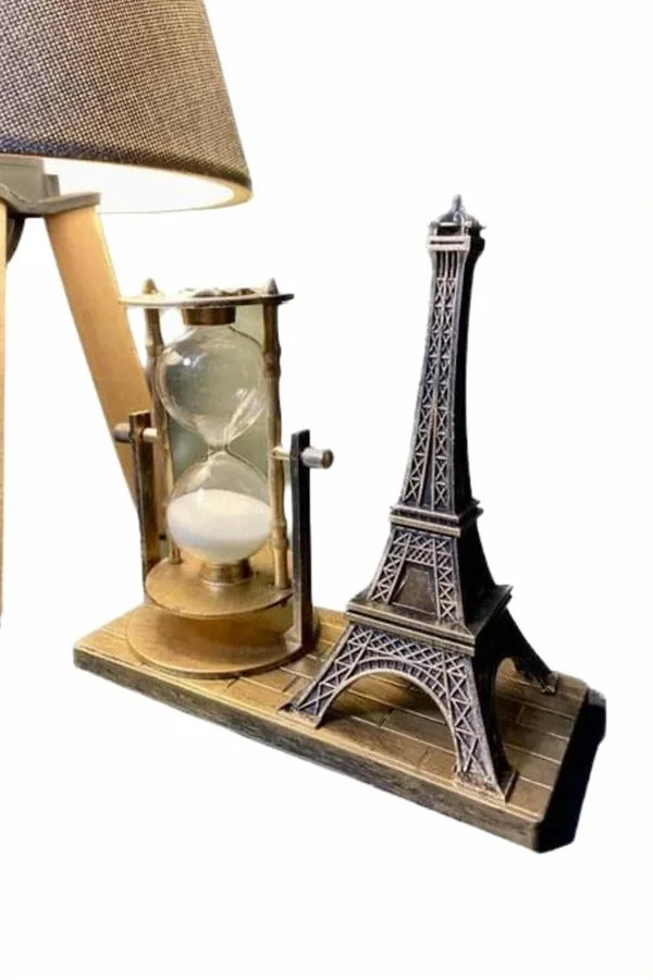 Dekoratif Ahşap Kum Saati ve Deniz Feneri Figürlü Masa Süsü – Şık ve Fonksiyonel Tasarım