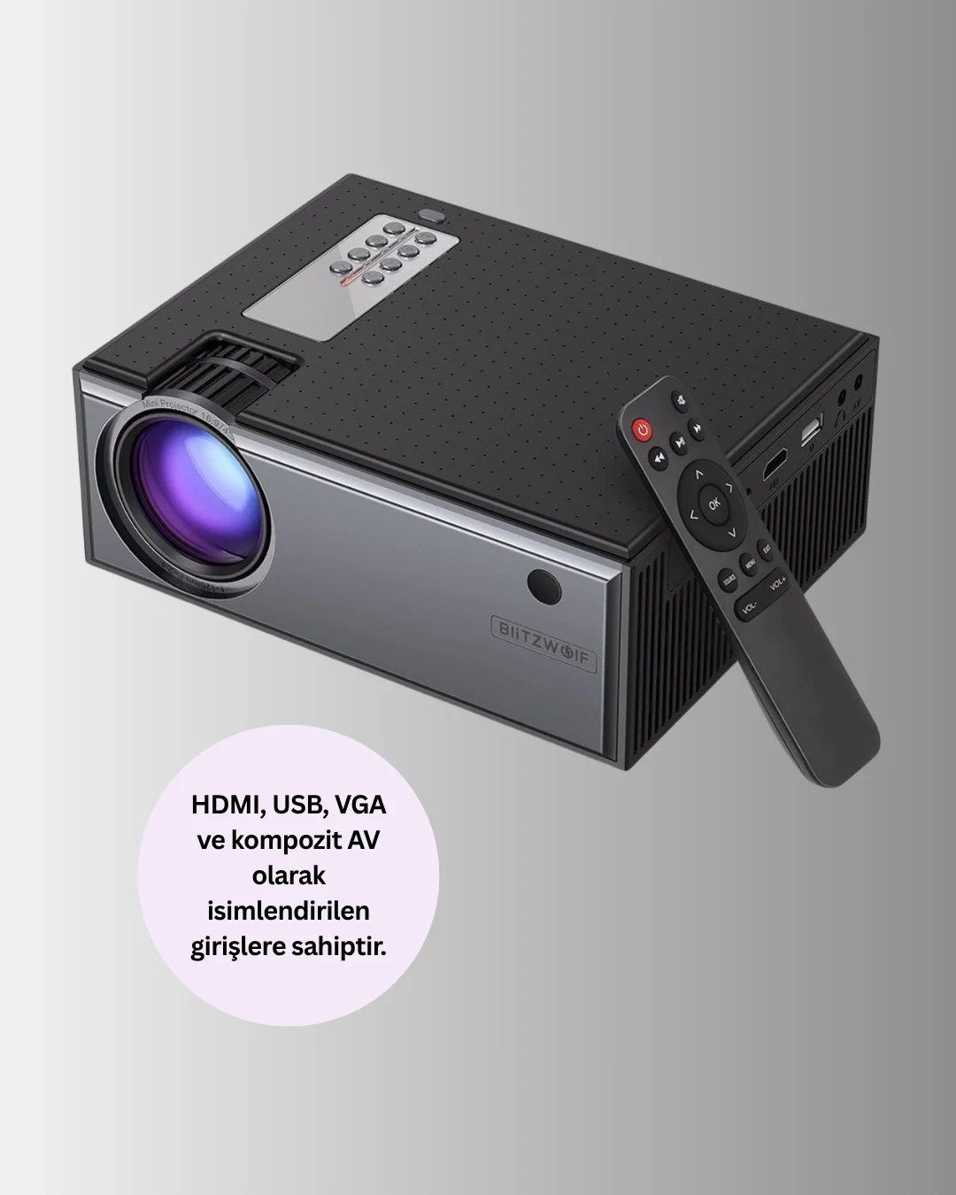 Full HD Destekli Taşınabilir Projeksiyon Cihazı – HDMI, USB, VGA Girişli, Uzaktan Kumandalı
