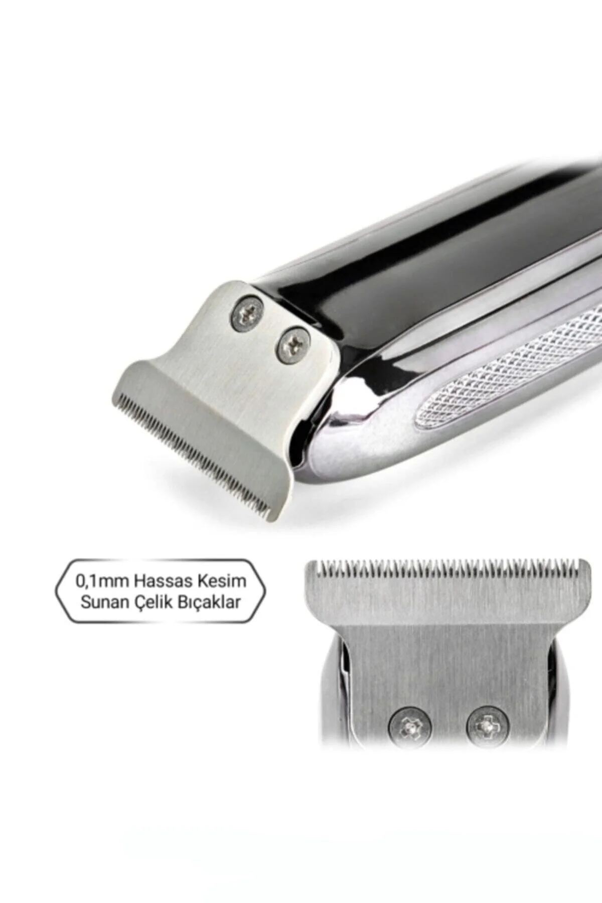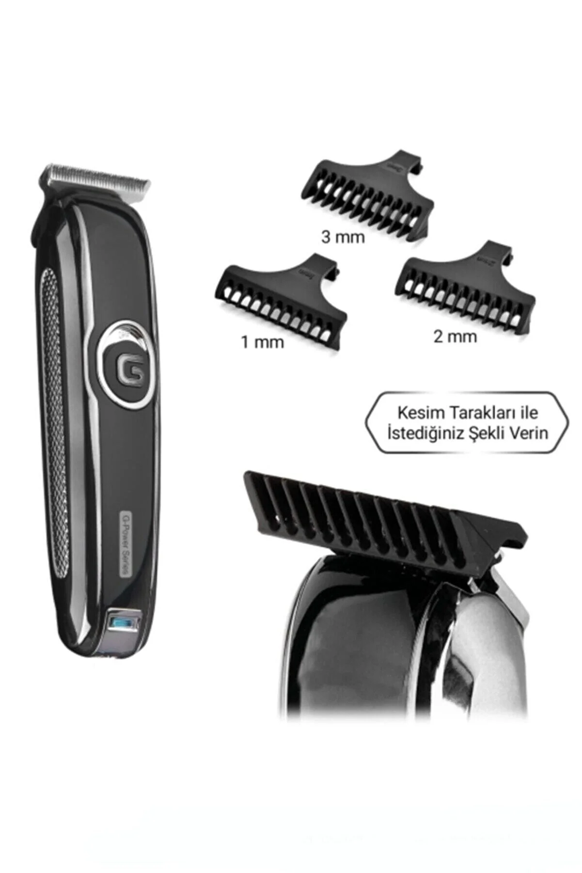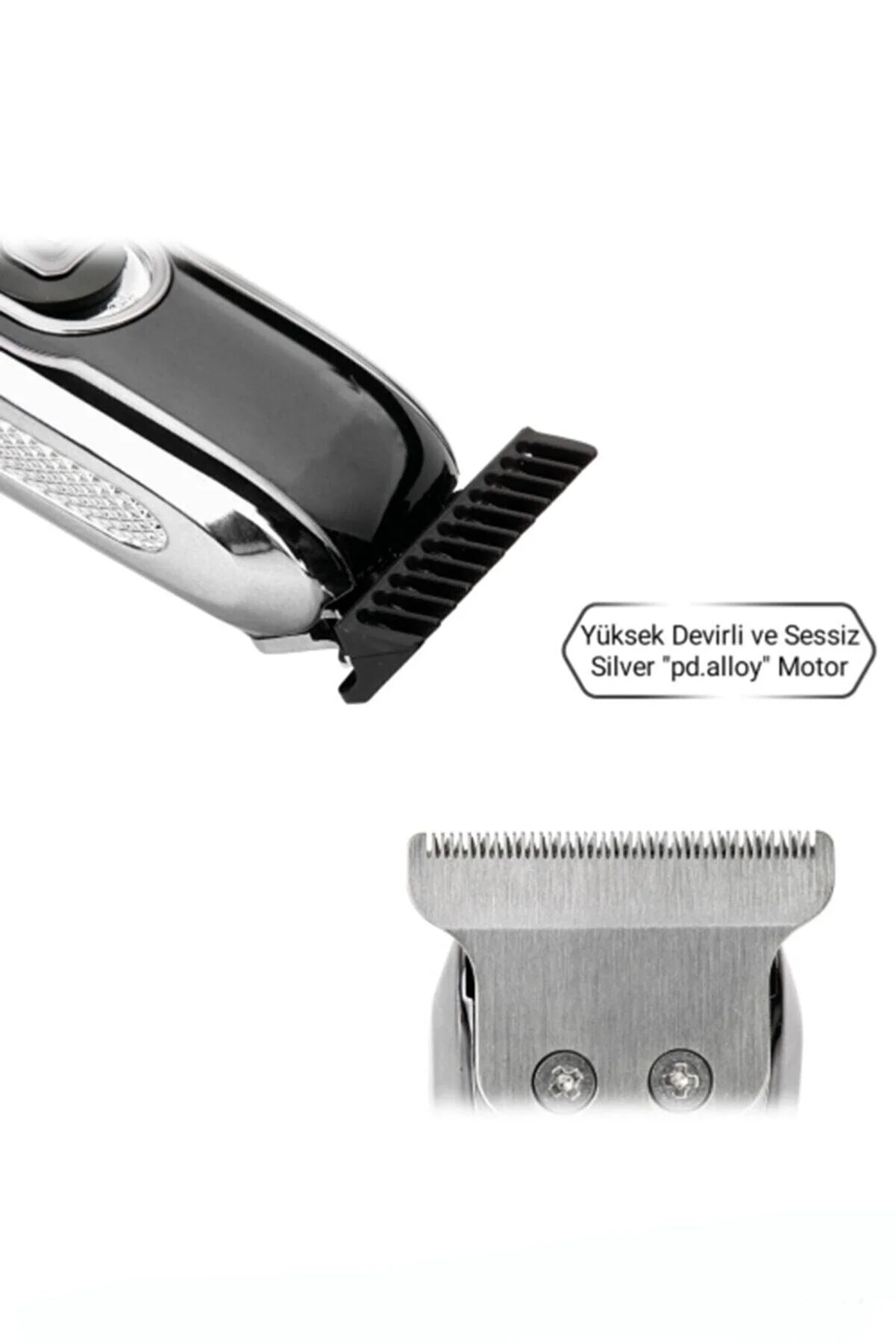 Özellikler: -saç ve sakal kesiminde mükemmel performans -gümüş "pd.Alloy" motor sayesinde en sık ve sert saç & sakallarda bile Çekme yolma ve yığılma yapmaz -keskin çelik bıçakları dayanıklı ve uzun ömürlüdür -yüksek devir gücü ile sorunsuz tıraş -sessiz ve titreşimi optimize edilmiştir -taraksız kullanımda sıfıra yakın (0,1mm) kesim sağlar -ergonomik yapısı sayesinde kolay kavranır Kutu içeriği: 1 adet şarjlı tıraş makinesi Taraklar 1 adet 1mm 1 adet 2mm 1 adet 3mm 1 adet şarj adaptörü 1 adet temizlik fırçası 1 adet bakım yağı Temizlik ve bakım Makinenin uzun ömürlü olması için bıçaklarını kullanım yoğunluğuna göre düzenli bir şekilde yağlayınız. Öncelikle her kullanımdan sonra kutu içerisinde bulunan temizlik fırçası ile makinenizin bıçaklarında ki saç-Sakal artıklarını temizleyiniz. Uzun süreli kullanımdan (1-2 ay) sonra detaylı temizlik için çelik bıçağın arkasındaki 2 adet vidayı sökünüz ve fırça ile temizliği tamamladıktan sonra uygun kısımları yağlayarak tekrar takınız. Makinenizi suya yada yağa yatırmayınız ve yıyınız. Kozmetik temizliği için nemli bez kullanınız. Temizlik aşamasında çözücü ve ovucu maddeleri kullanmayınız.