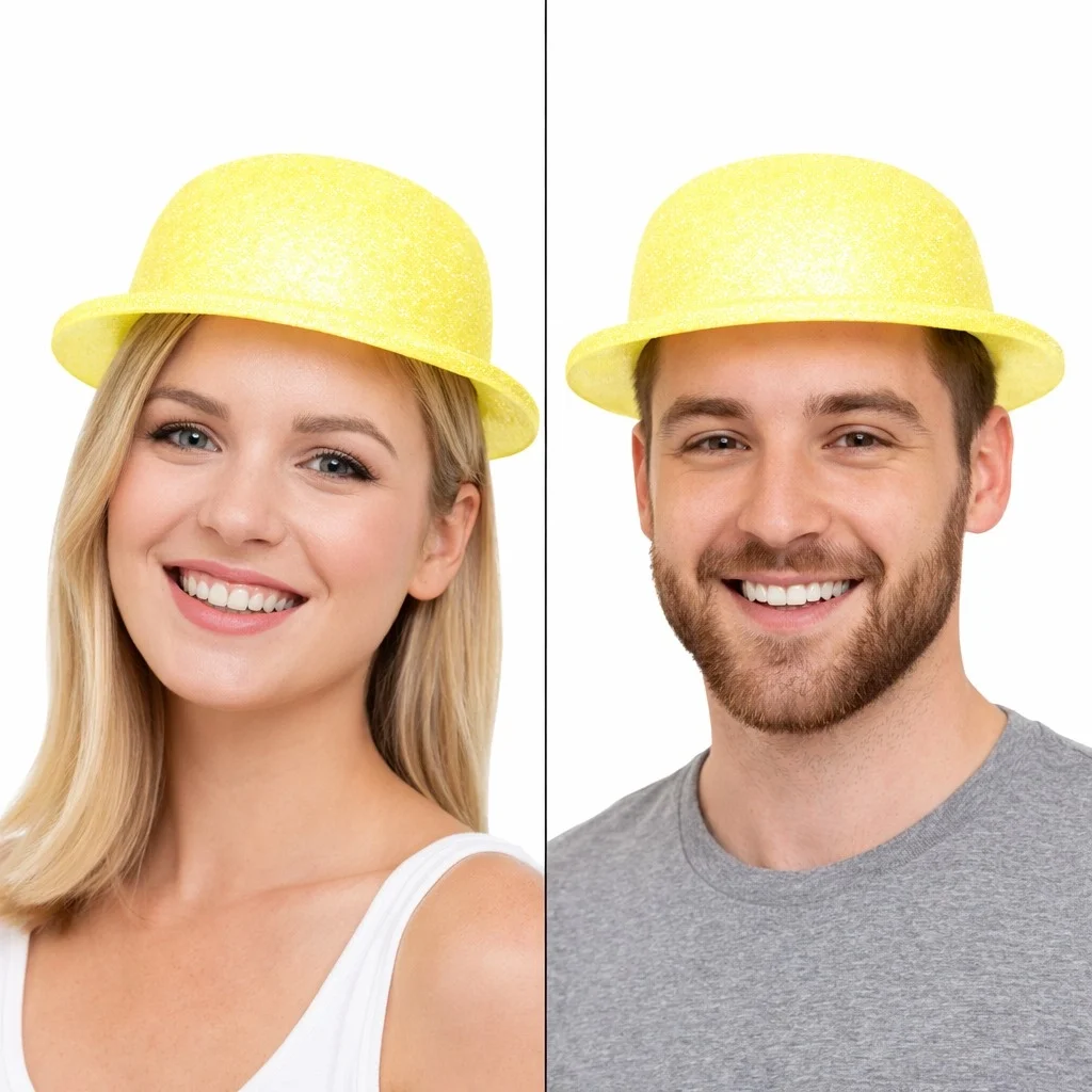 Glitter simli melon şapka 9’lu set, parti, kostüm, doğum günü, yılbaşı ve özel organizasyonlar için tasarlanmış renkli ve eğlenceli bir şapka setidir.