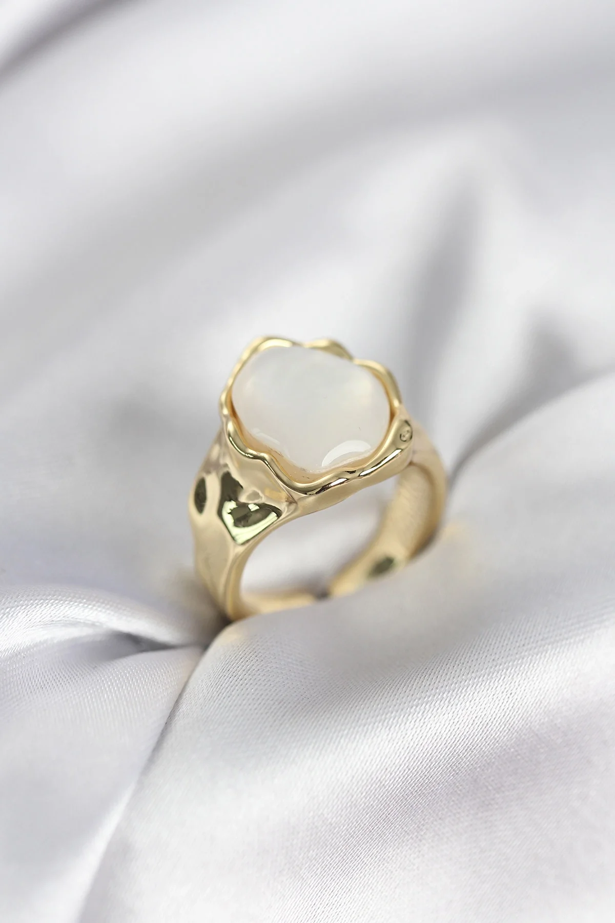 Gold Renk Beyaz Taşlı Vintage Kadın Yüzük