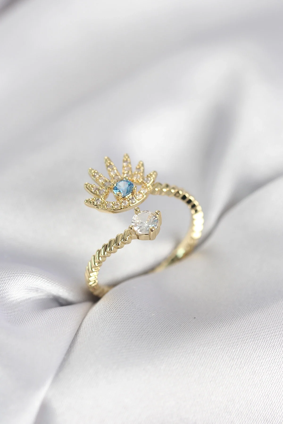 Gold Renk Göz Model Zirkon Taşlı Kadın Yüzük