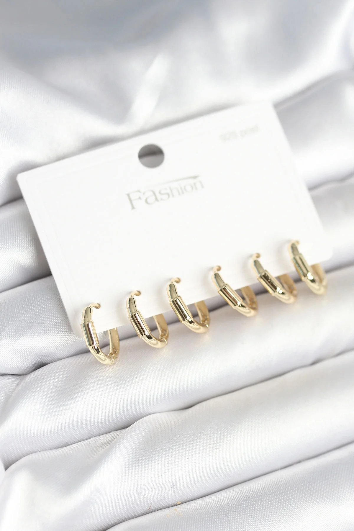 Gold Renk Pirinç Halka Model 925 Ayar Gümüş Çivili Kadın Küpe Seti
