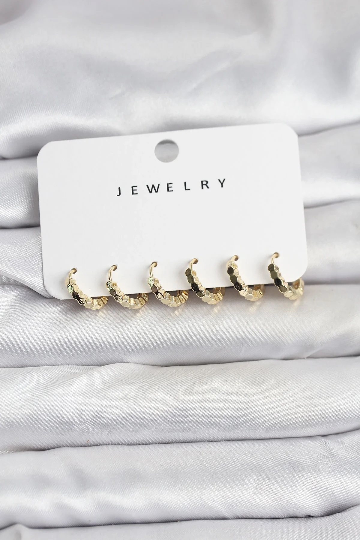 Gold Renk Pirinç Minimal Petek Detaylı Kadın Küpe Seti