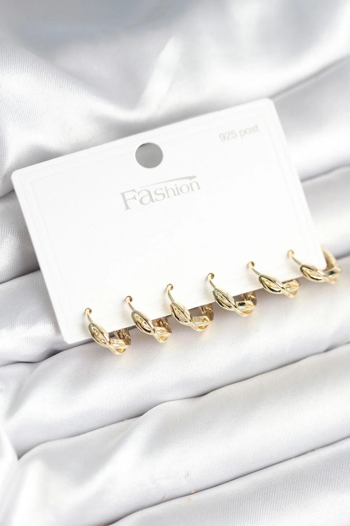 Gold Renk Pirinç Sarmal Model 925 Ayar Gümüş Çivili Kadın Küpe Seti