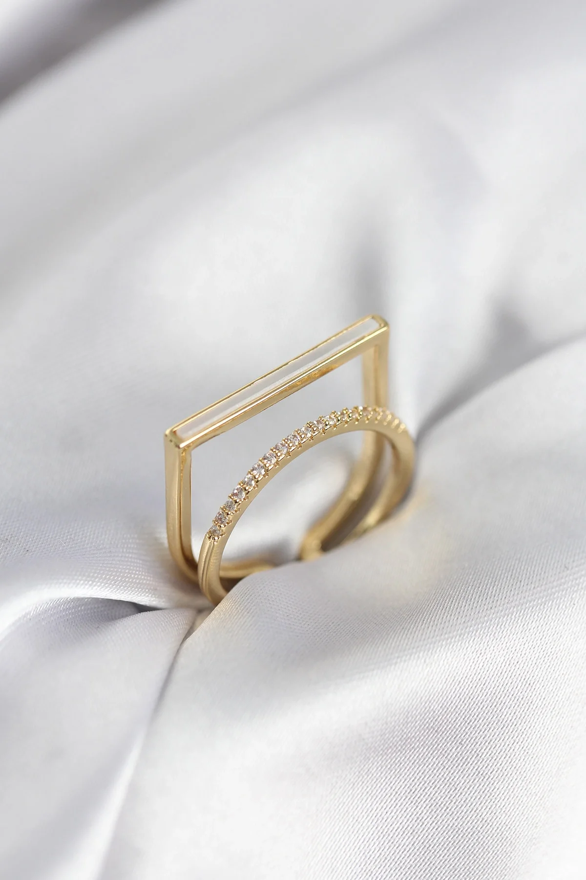 Gold Renk Sedefli Zirkon Taşlı 2'li Kadın Yüzük