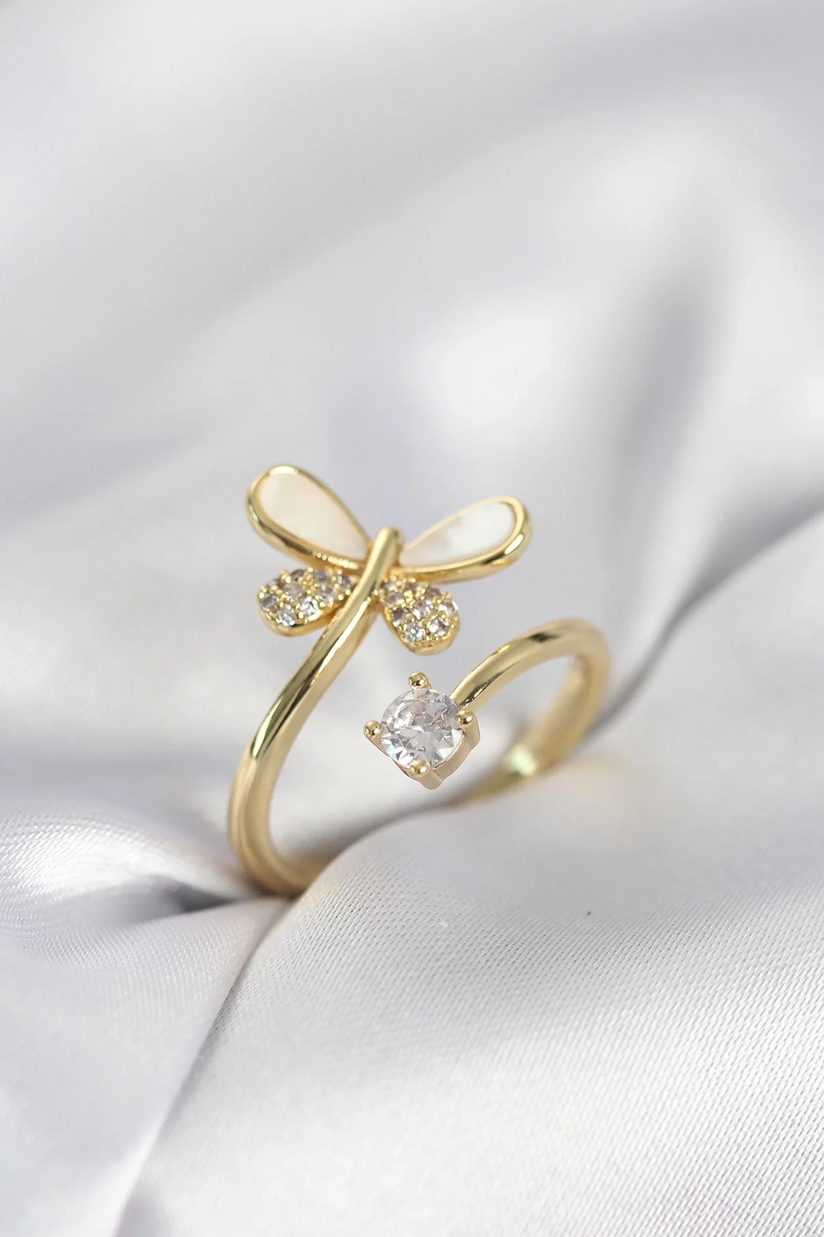 Gold Renk Yusufçuk Model Zirkon Taşlı Kadın Yüzük
