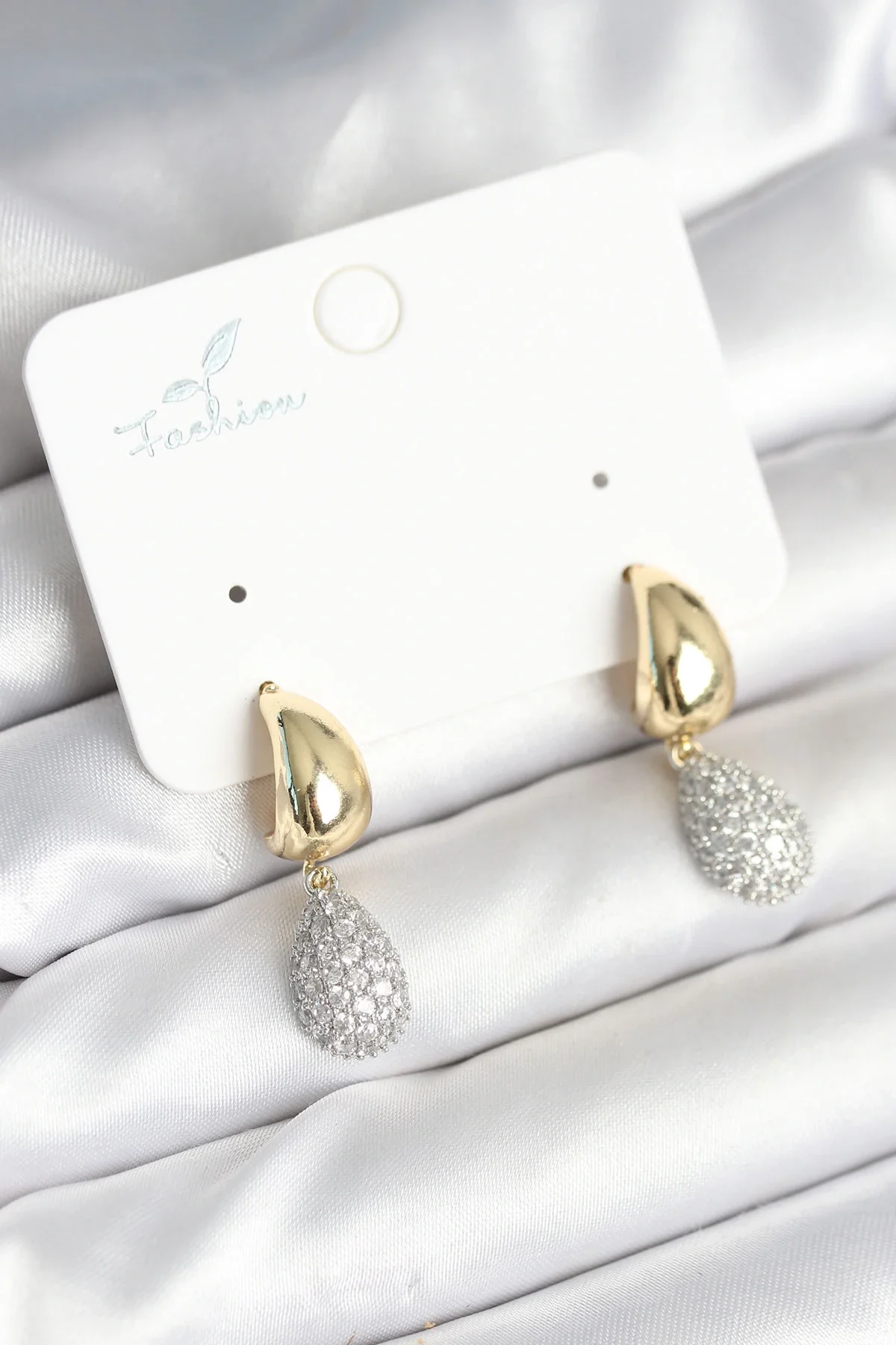 Gold Renk Zirkon Taşlı Damla Pirinç Kadın Küpe