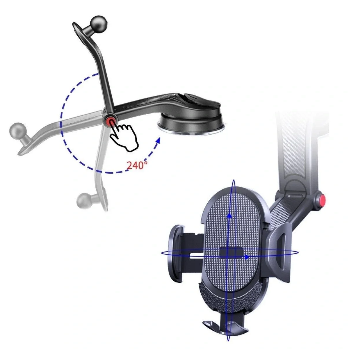 - Güçlü Vantuz: Yüksek kaliteli malzemeden üretilmiş vantuz, aracınızın konsoluna veya düz bir yüzeye güçlü bir şekilde yapışır, sarsıntılarda bile güvenli bir tutuş sağlar.