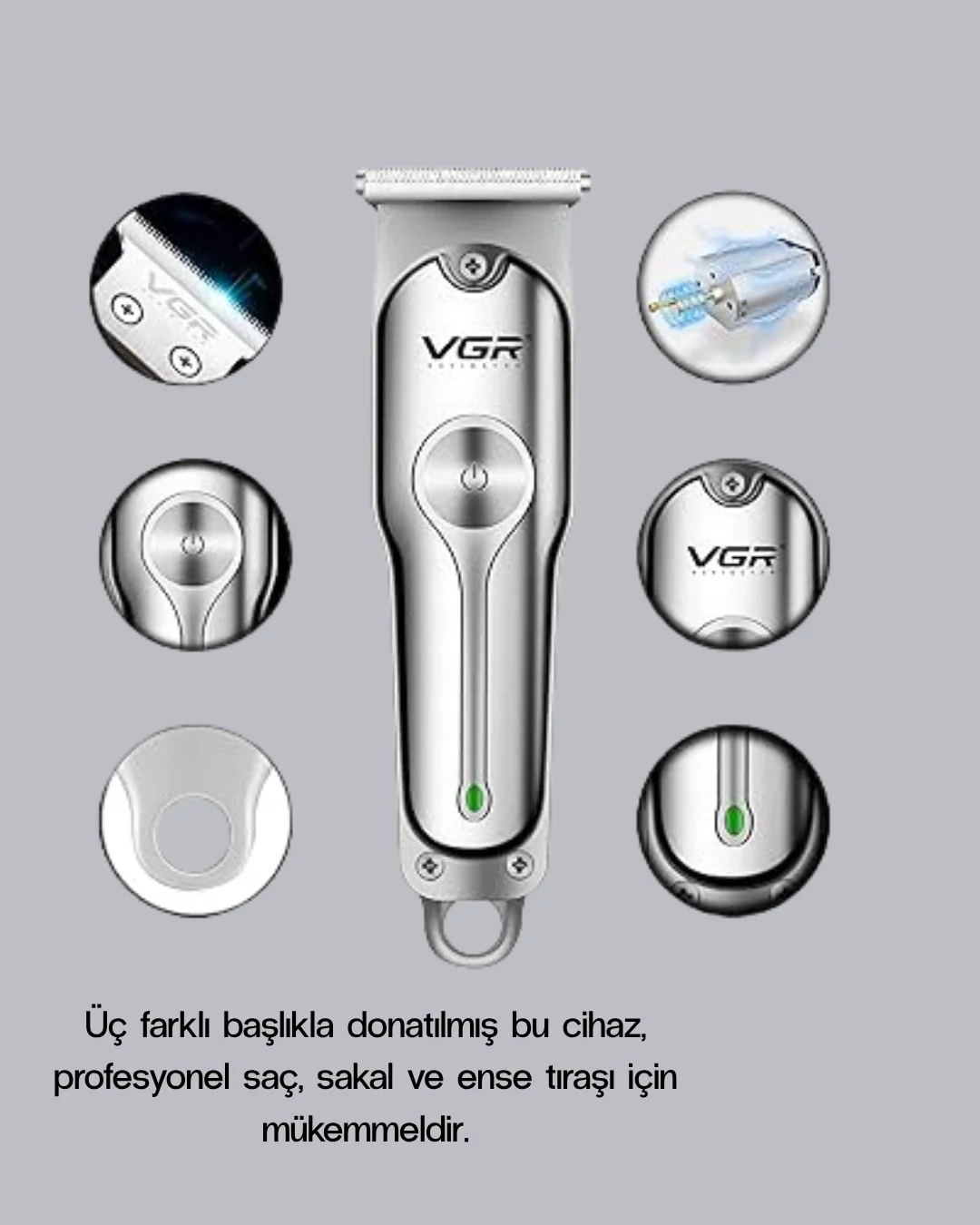 Kablosuz Profesyonel Tıraş Makinesi – Şarjlı, 60 Dakika Kullanım Süreli, Çelik lı, Sessiz Motor