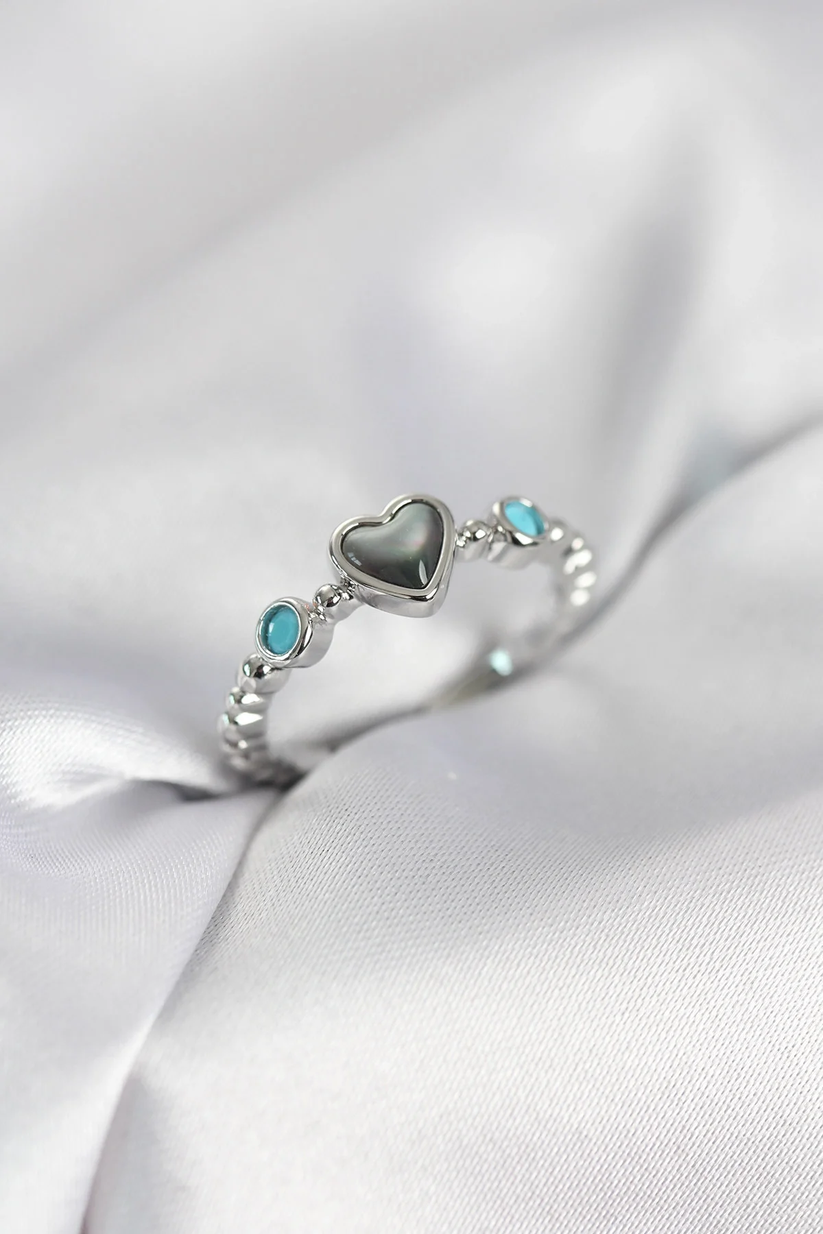 Gümüş Renk Hematit Taşlı Kadın Yüzük